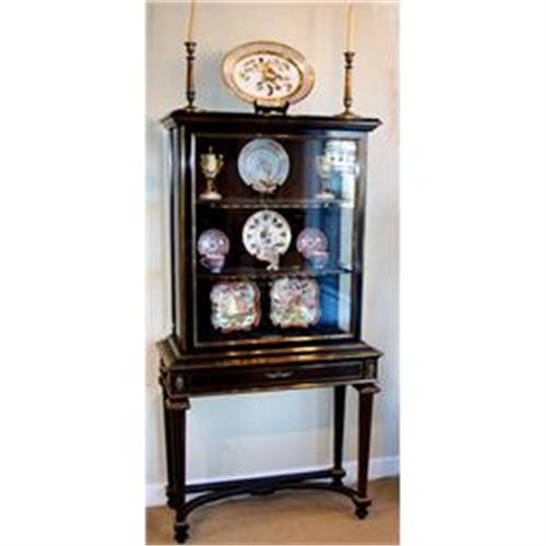<tr><td>Title:Fine ebony and brass vitrine display cabinet </td></tr>