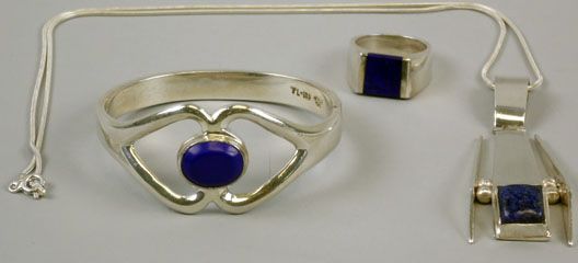 on sterling chain, set with Lapis Lazuli with matching bracelet and ring.
