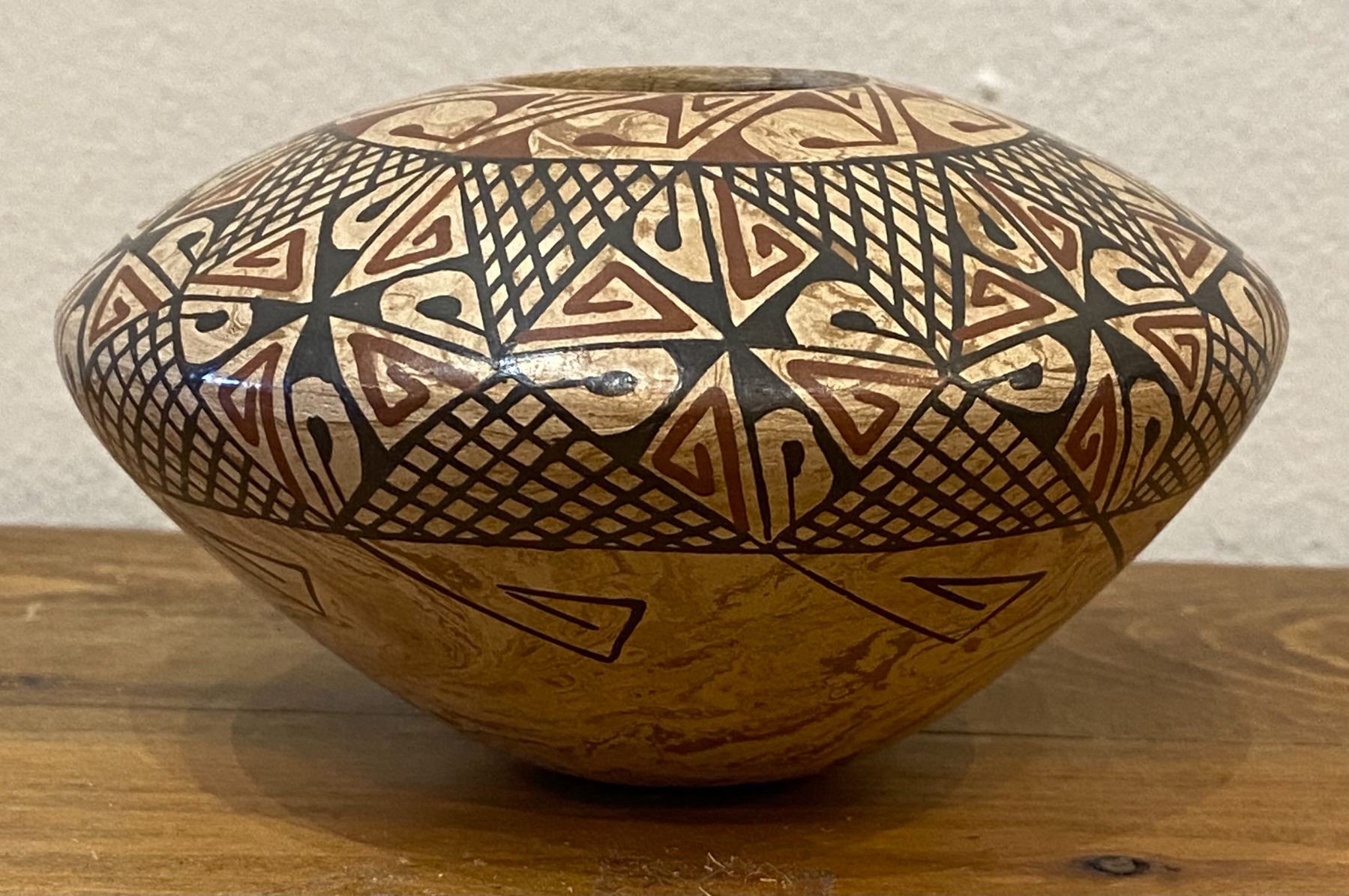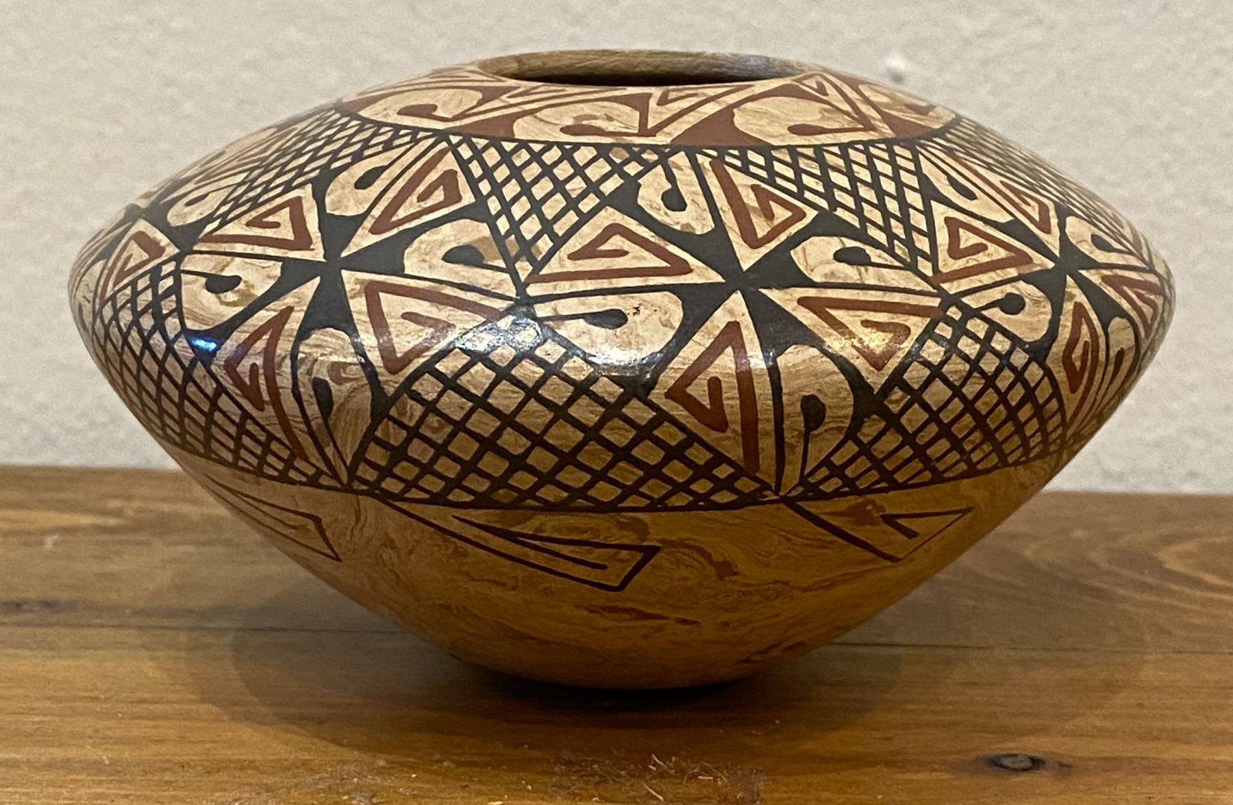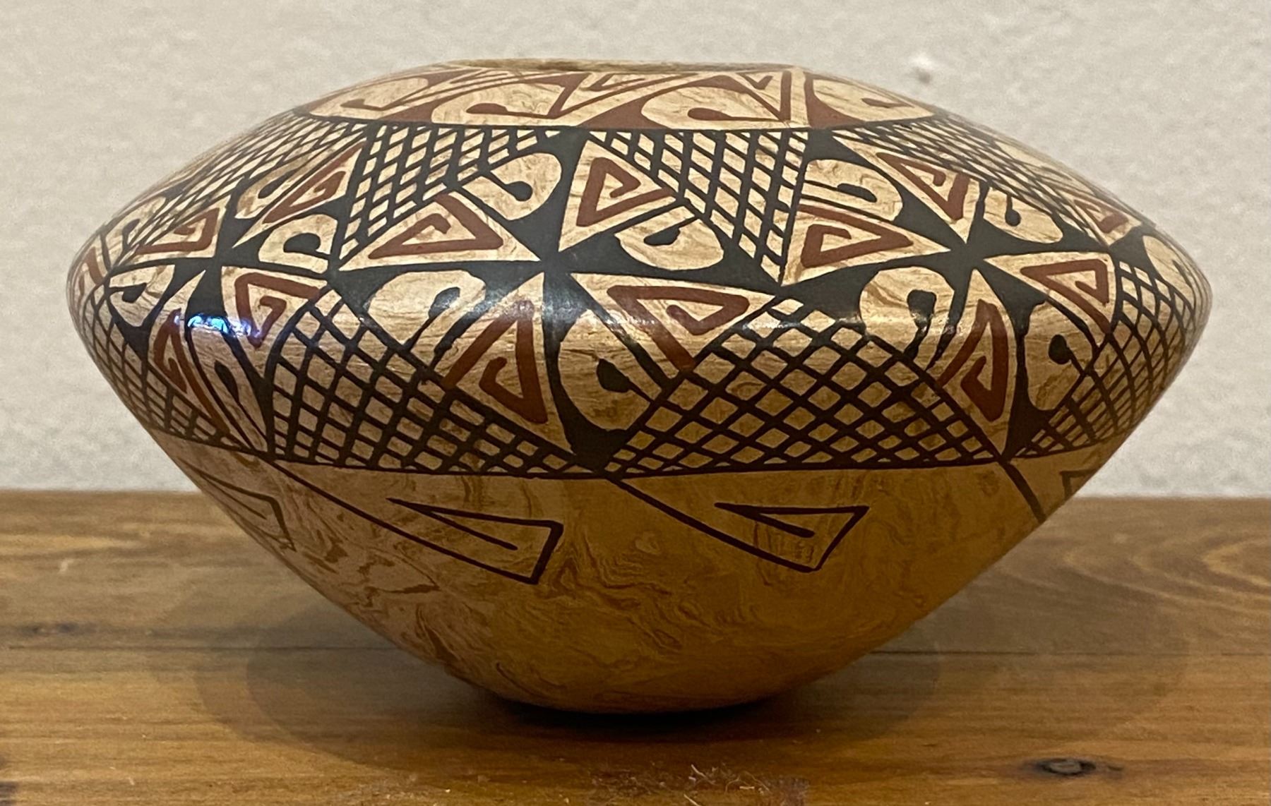This wonderful Seed Pot is signed however I cannot make out the signature. Great Designs!