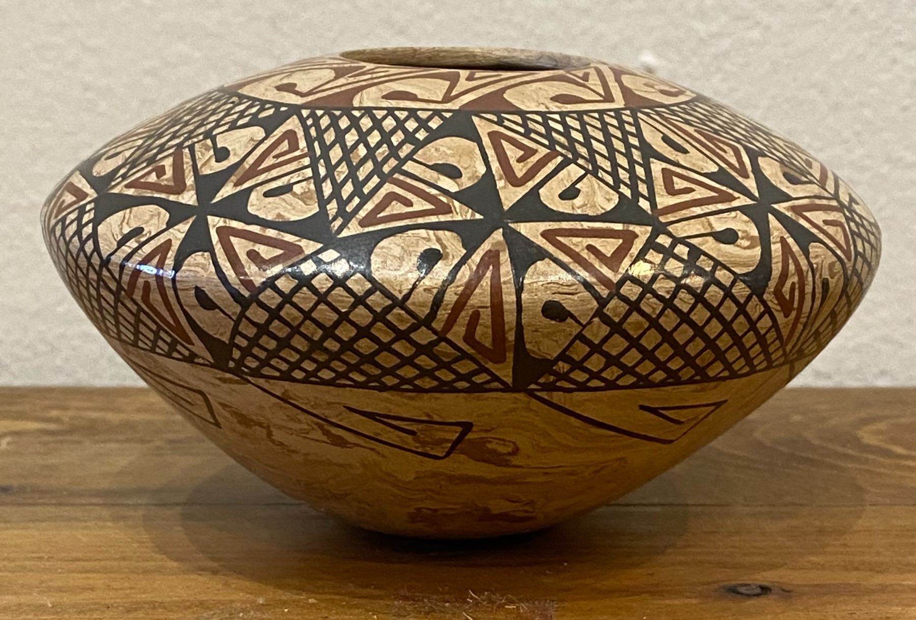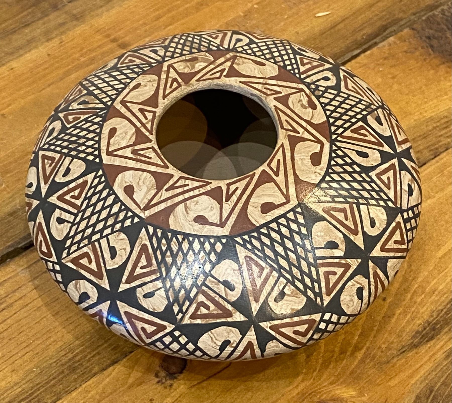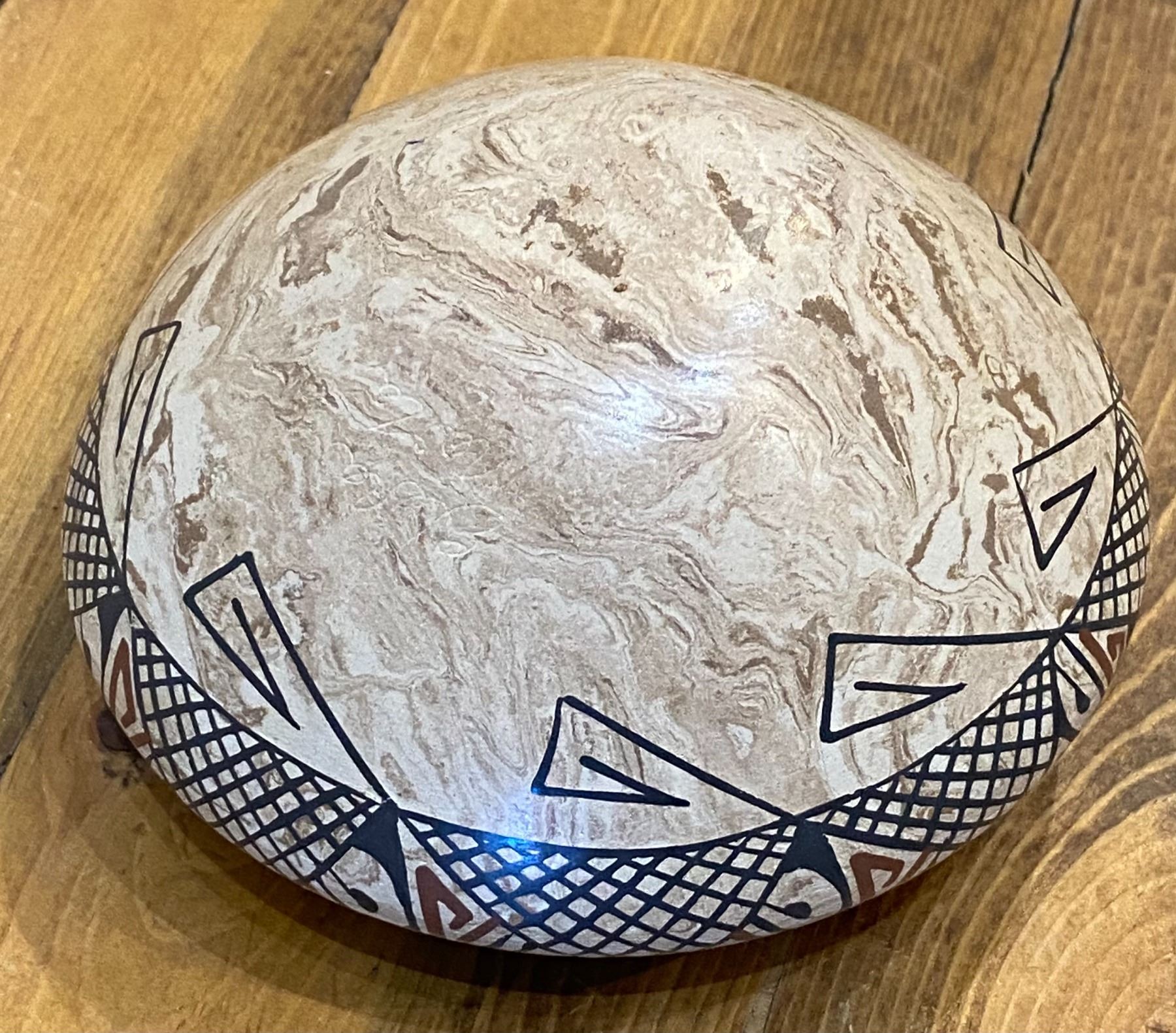 This wonderful Seed Pot is signed however I cannot make out the signature. Great Designs!