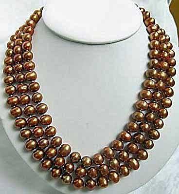 Fine three rows chocolate Akoya Cultured Pearl necklace