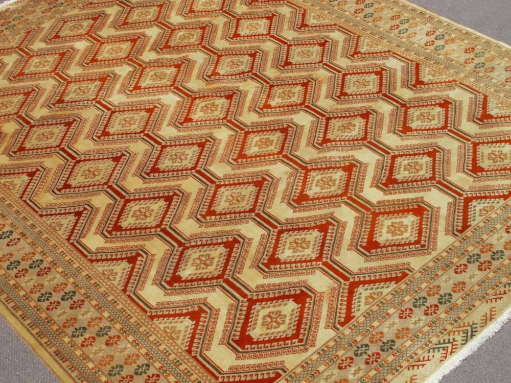Rug: Handmade Persian Turkmen Area Rug; Material: 100% Fine quality wool pile, all natural vegetable dye; Size: 13.1 x 9.10 feet; Foundation: Cotton; Design: Turkman; Origin: Iran