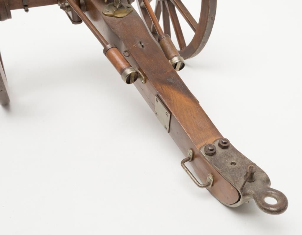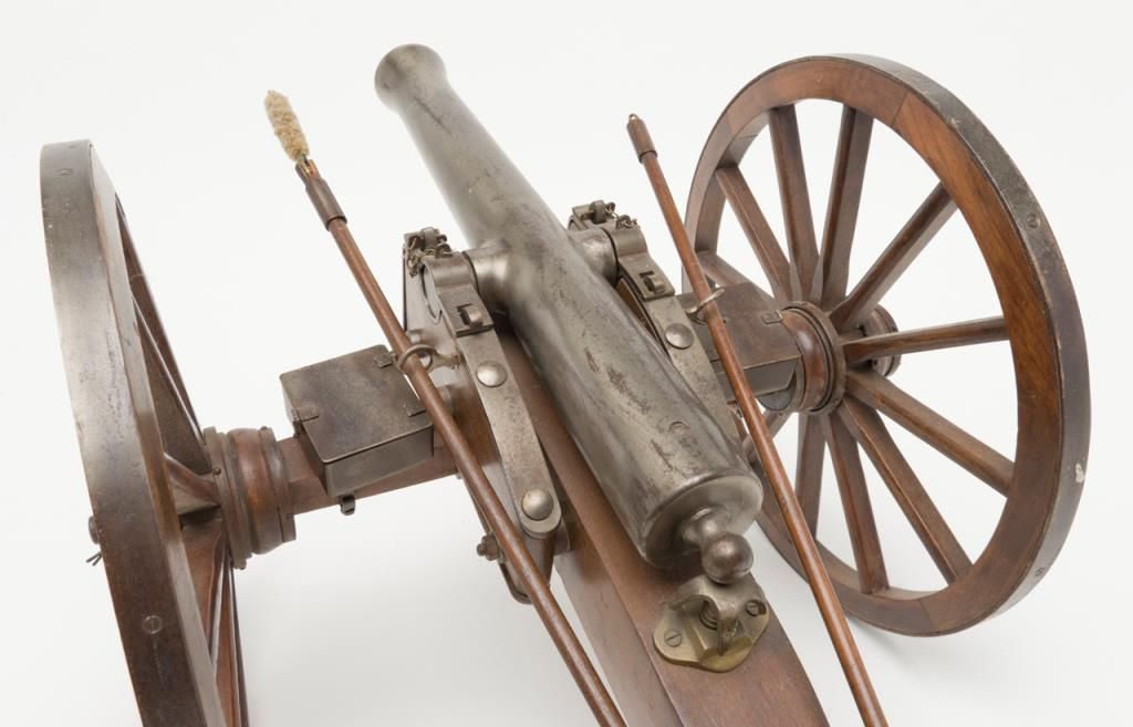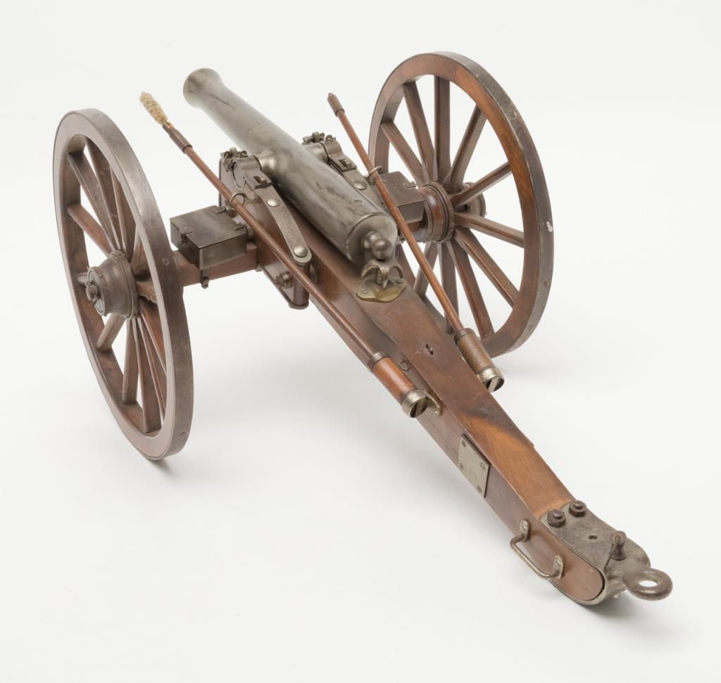 Finely constructed example of a mid-1800’s field cannon on wooden carriage, approx. 27” long, 17” wide and 12” high with great attention to detail and beautiful craftsmanship. Est.: $150-$300.