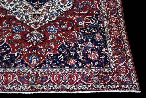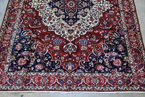Finely detailed Persian Bakhtiari 'Desert Rug'. Made of fine quality baby lamb's wool pile on cotton foundation, all natural vegetable dye, incorporating a finely detailed floral pattern on a rich red background; large centerpiece medallion; crowned corners and an intricate floral border. Signed 'Desert Rug'. Hand woven in Bakhtiar, Iran. Size 10 feet 2 inches X 7 feet 2 inches.