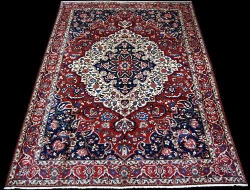 Finely detailed Persian Bakhtiari desert design Rug. Made of fine quality baby lamb's wool pile on cotton foundation, all natural vegetable dye, incorporating a finely detailed floral pattern on a rich red background, large centerpiece medallion, crowned corners and an intricate floral border. Signed desert Rug. Hand woven in City of Bakhtiar from Iran. Size: 10 feet 2 inches X 7 feet 2 inches.