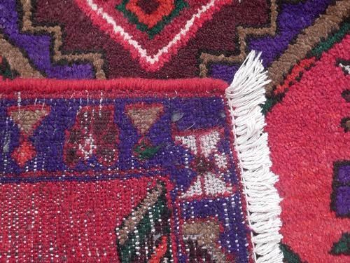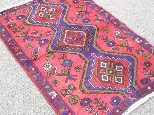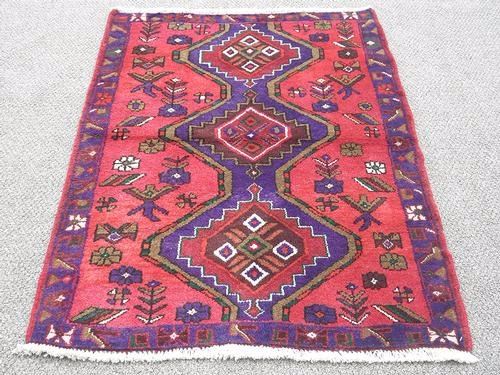 Finely knotted delicate Persian Hamadan Rug. Made of fine quality baby lamb's wool pile on cotton foundation, all natural vegetable dye, incorporating a geometric-floral design on rich red and blue navy background are beautifully put together in this Rug. The contest of colors, the complicated shapes are very unique in this Rug. The artist have use the white color to give a border to a row of three medallions to make it really standout. Hand woven in City of Hamadan from Iran. About Hamadan Rugs: Hamadan is the capital of an eponymous province, and it's one of the oldest Cities in Persia. It's also one of Persia's most productive and diverse weaving centers. Over the years, many refugees, minorities and ethnic groups have inhabited the area. Like other cities in the western part of Persia, Hamadan produced fine, coarse carpets that are made with the symmetric ghiordes or Turkish knot. Due to the sheer number of villages in the province of Hamadan and the area's ethnic diversity, many unique designs are featured in these regional Rugs. Traditionally, Hamadan has been a center for commercial carpet production. The fragmented ethnic groups that have historically lived in Hamadan include Kurds, Azeri Turks and Islamic people. Antique Hamadan Rugs traditionally favor angular designs although large-scale arabesques and curvilinear motifs are also found. They are closely related to Rugs produced in the neighboring areas of Bibakabad, Shiraz, Lillian and dozens of Cities that produce local styles. Size: 4 feet 6 inches X 3 feet.