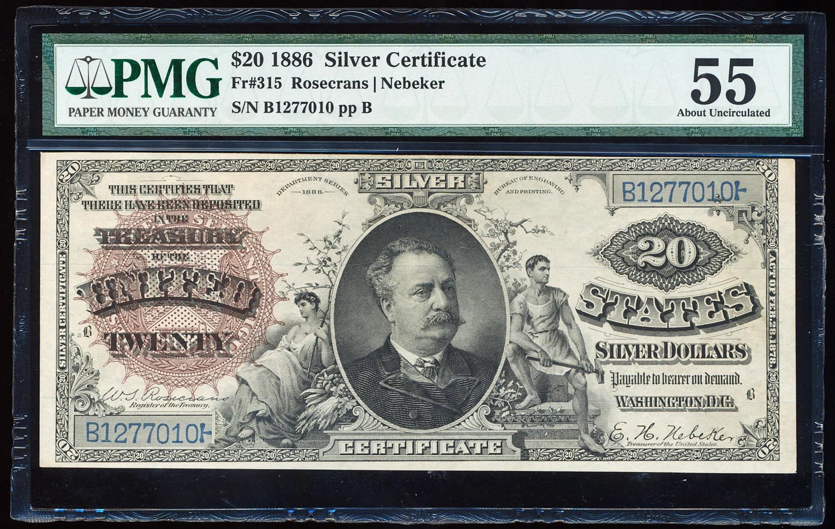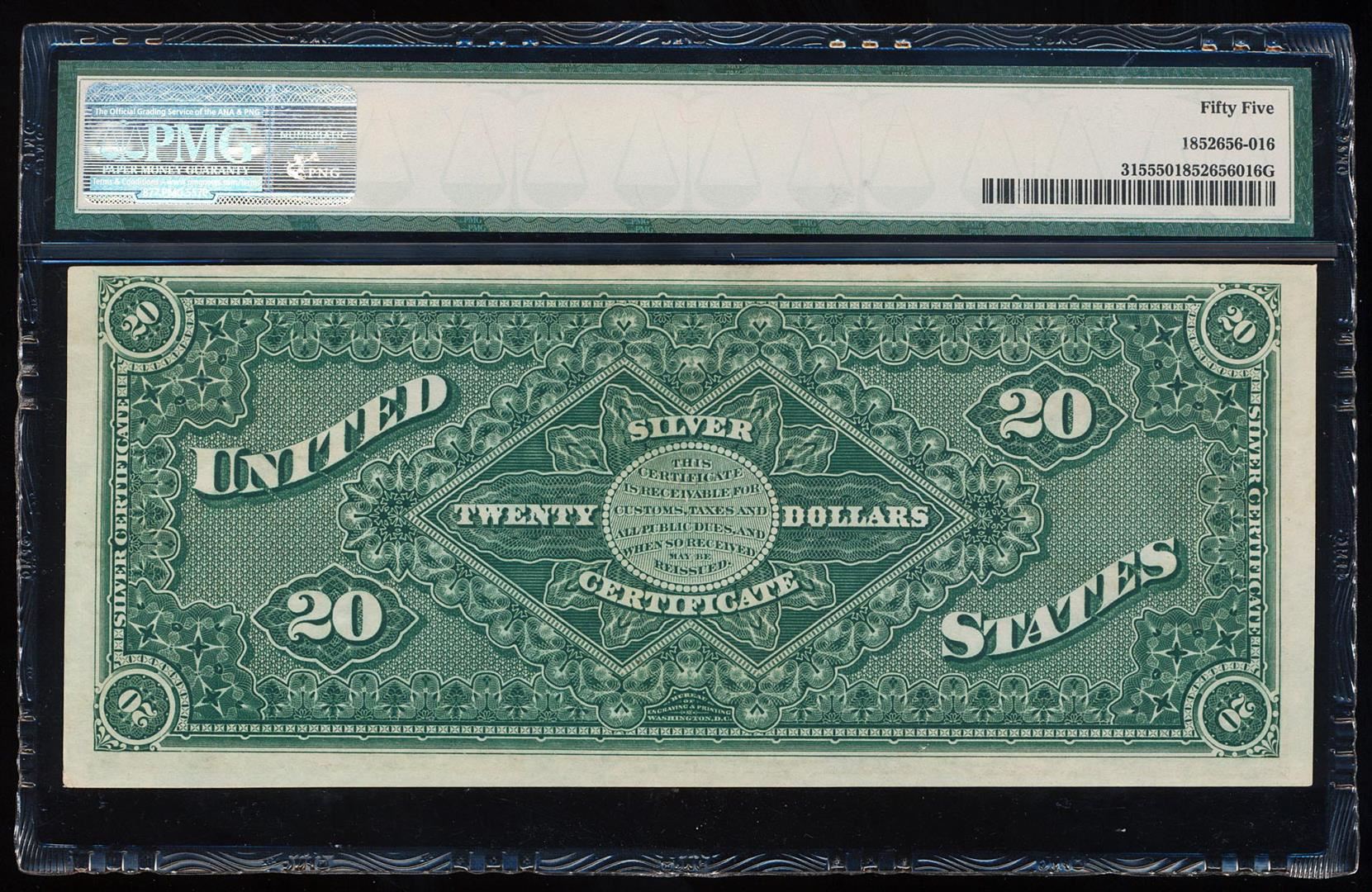 One Finest Known 1886 $20 "Diamond Back" Silver Certificate Note Fr.315 PMG About Unc. 55> PMG Certified.