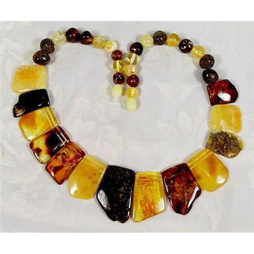 PLEASE note I only ship to the continental USA and Canada and if paypals is used the address MUST BE CONFIRMED<p>...Truly a WOW choker of MIXED natural freeformed Baltic amber for those that adore a very classical presentation. With a gram weight of 46 and an approximate length of 16" this collier sports large amber plates. The largest with measurements of 36x25mm and the beads at the closure being 10mm. The color is magnificent as the photos so clearly illustrate. (a561t-ga)