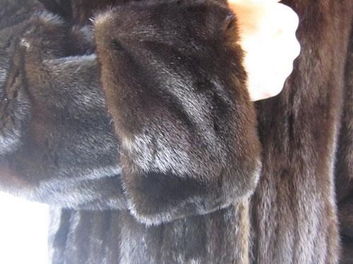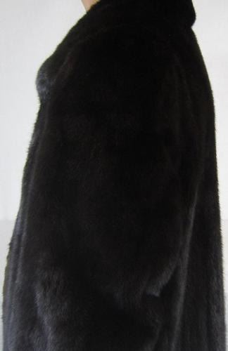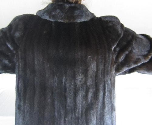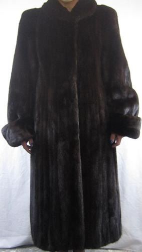 Mahogany mink long coat, Size: extra-large (XL). Length 47 inches, sleeve 24 inches, swing 64 inches. This charming piece has previously been monogrammed. Country of Origin: Canada.