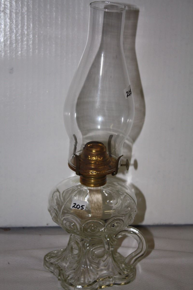 A bull's-eye patterned clear lamp. Finger footed- kerosene