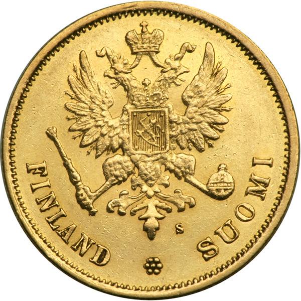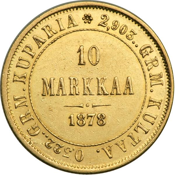 Finland. 10 Markkaa, 1878-S. Fr-4; KM-8.1. Alexander II of Russia. Crowned eagle. Reverse: Value and date. Very Fine.