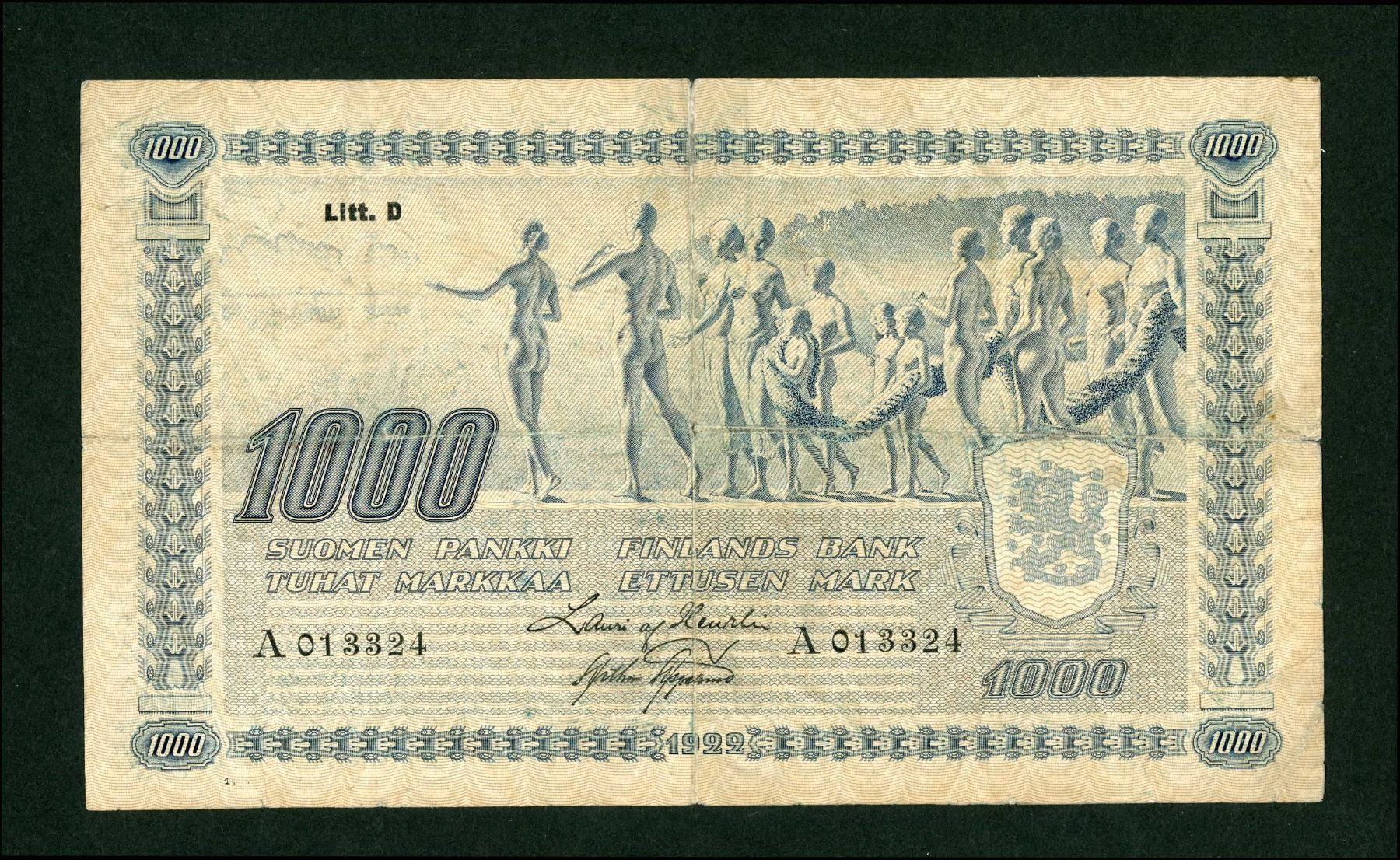 Finland 1000 Markkaa 1922 (1939) P-67a, Banknote Fine