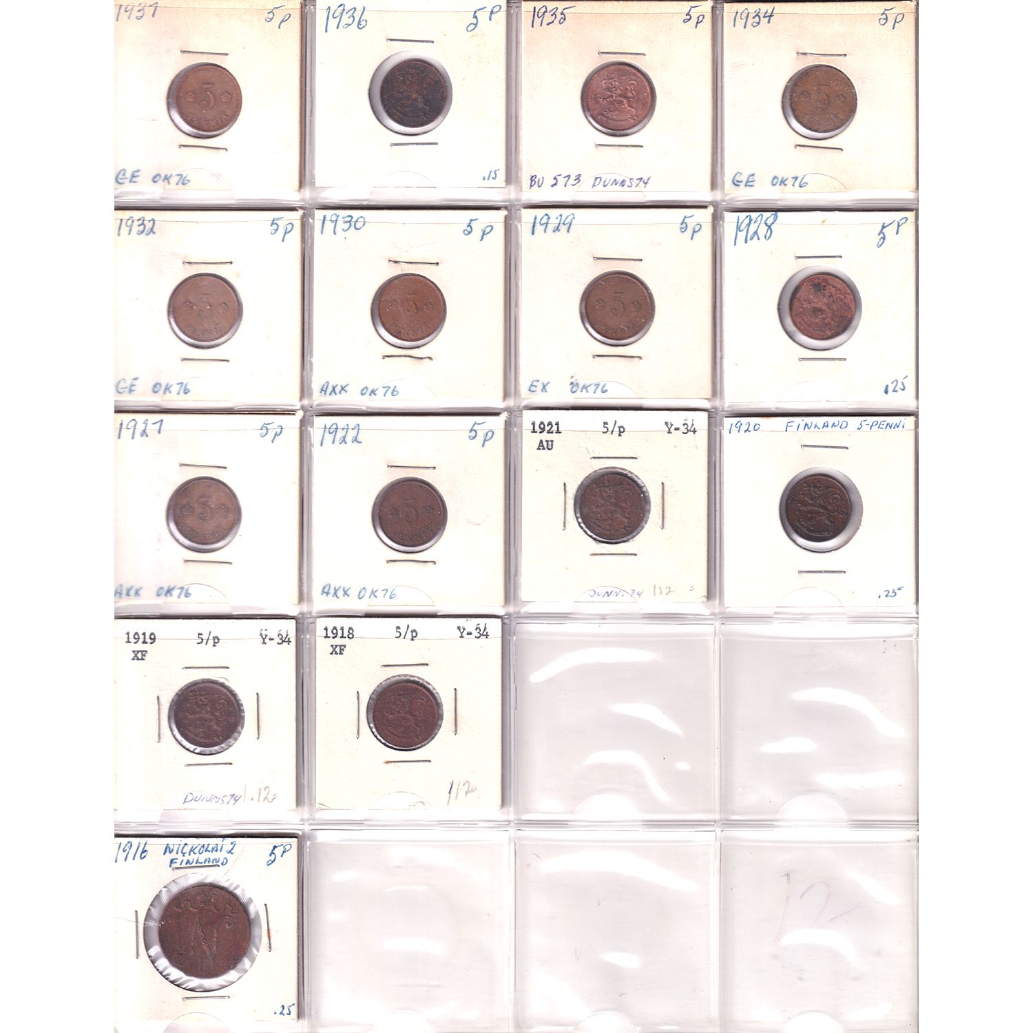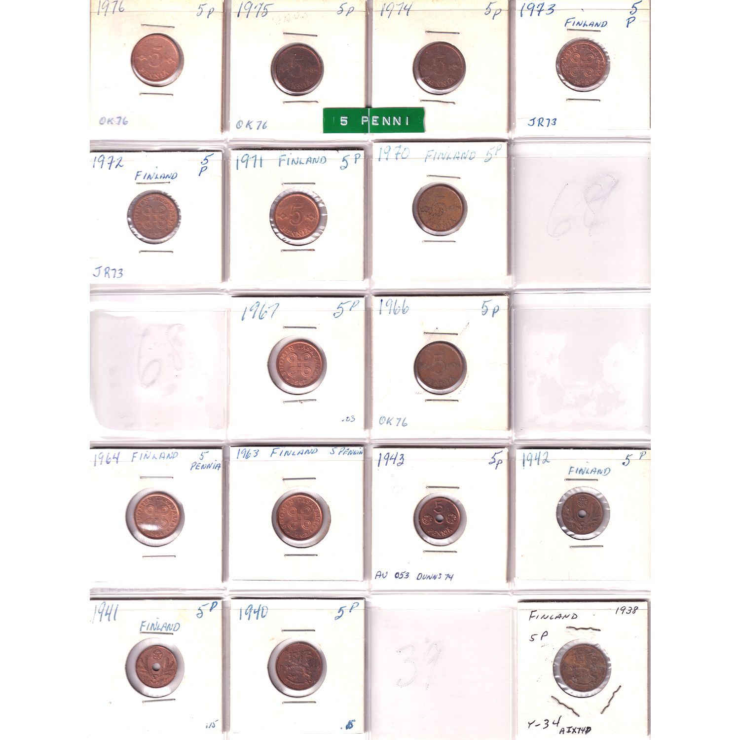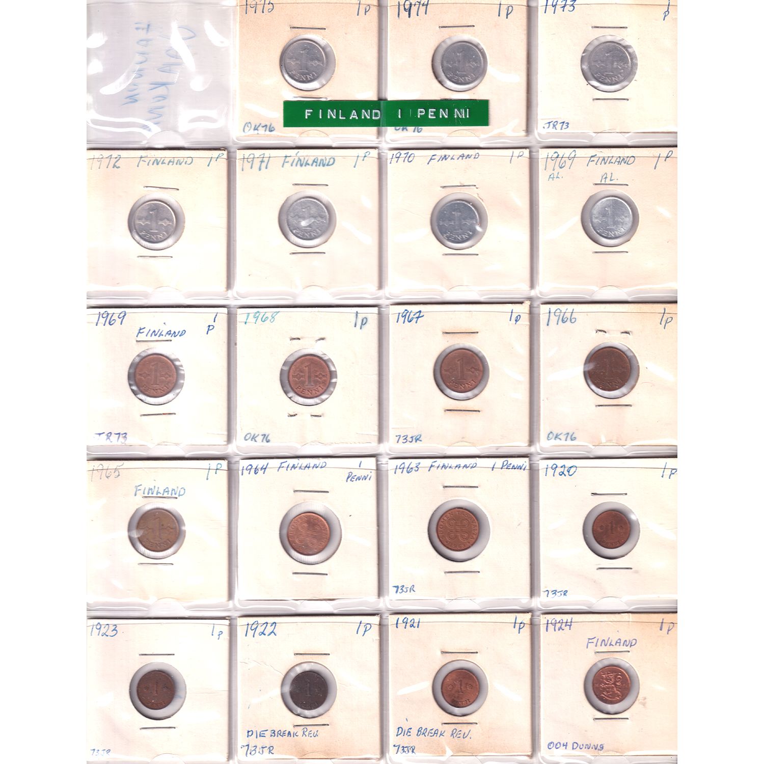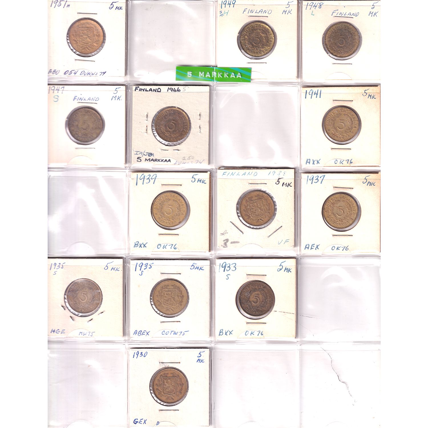 INCLUDES: 1940 5 Pennia, 1951 5 Markkaa, 1958 5 Mark & Many More!! Sold as is; please view images for details. 191pcs.