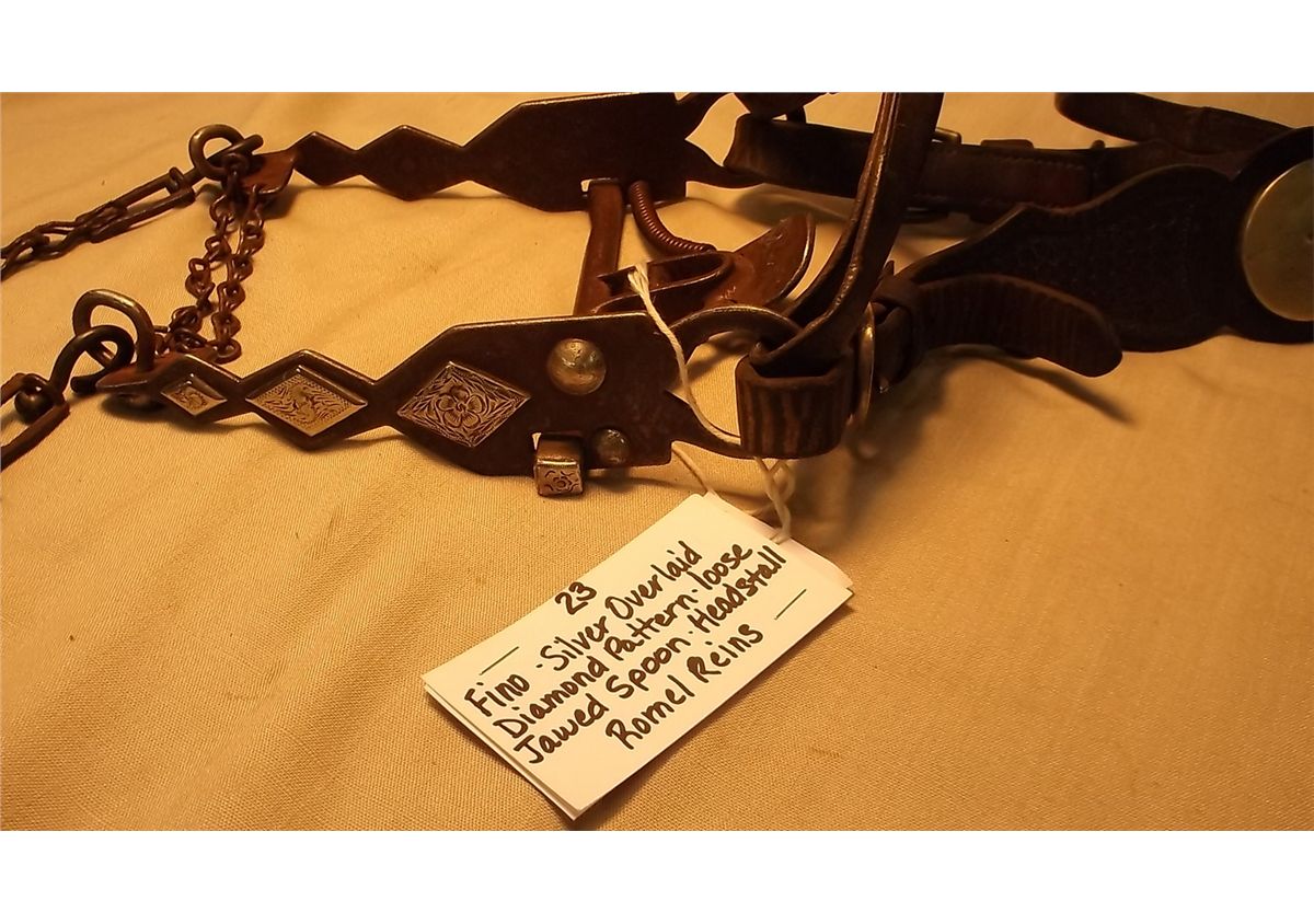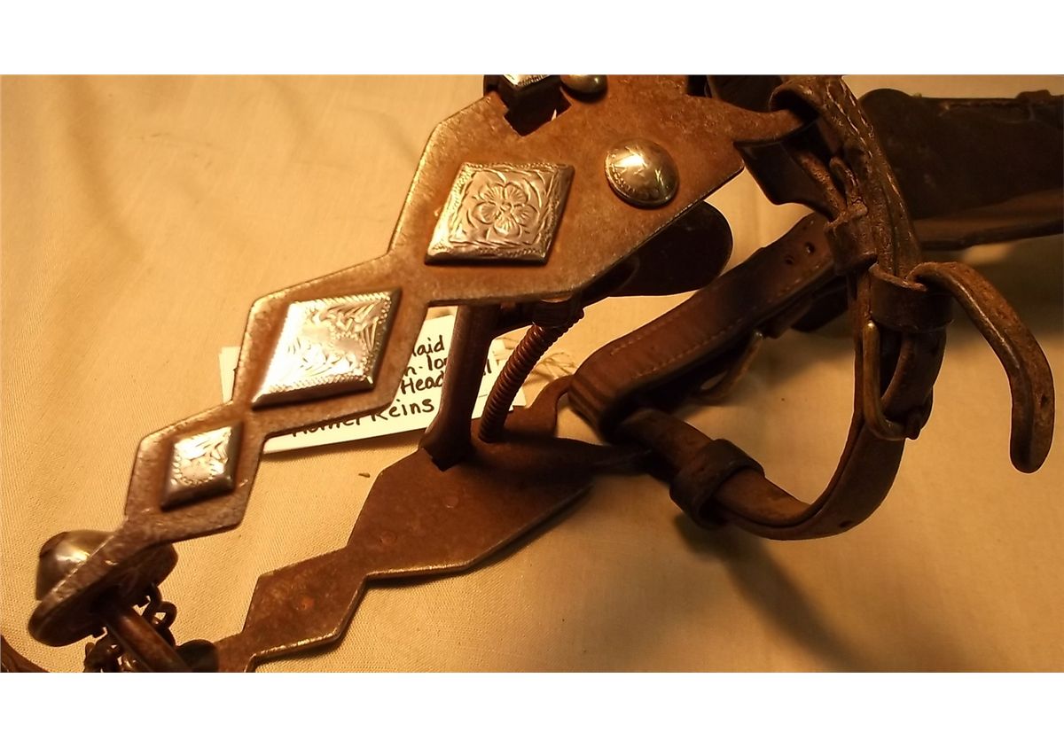 Fino-Silver Overlaid-Diamond Pattern Loos Jawed Spoon-Headstall-Romel Reins