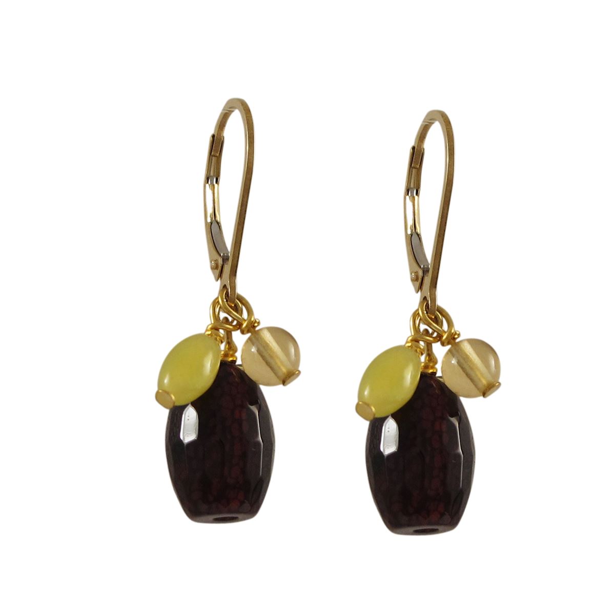 Fire Agate Combination Semi Precious Stone On Gold Plated Sterling Silver Lever Back Earrings-1.25"
