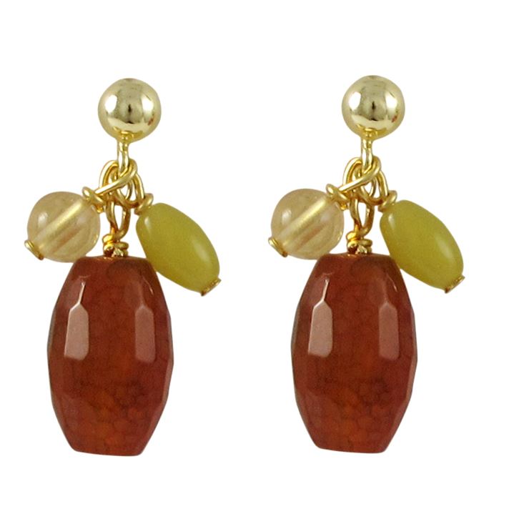 Fire Agate Combination Semi Precious Stones On Gold Plated Sterling Silver Post Earrings-0.87"