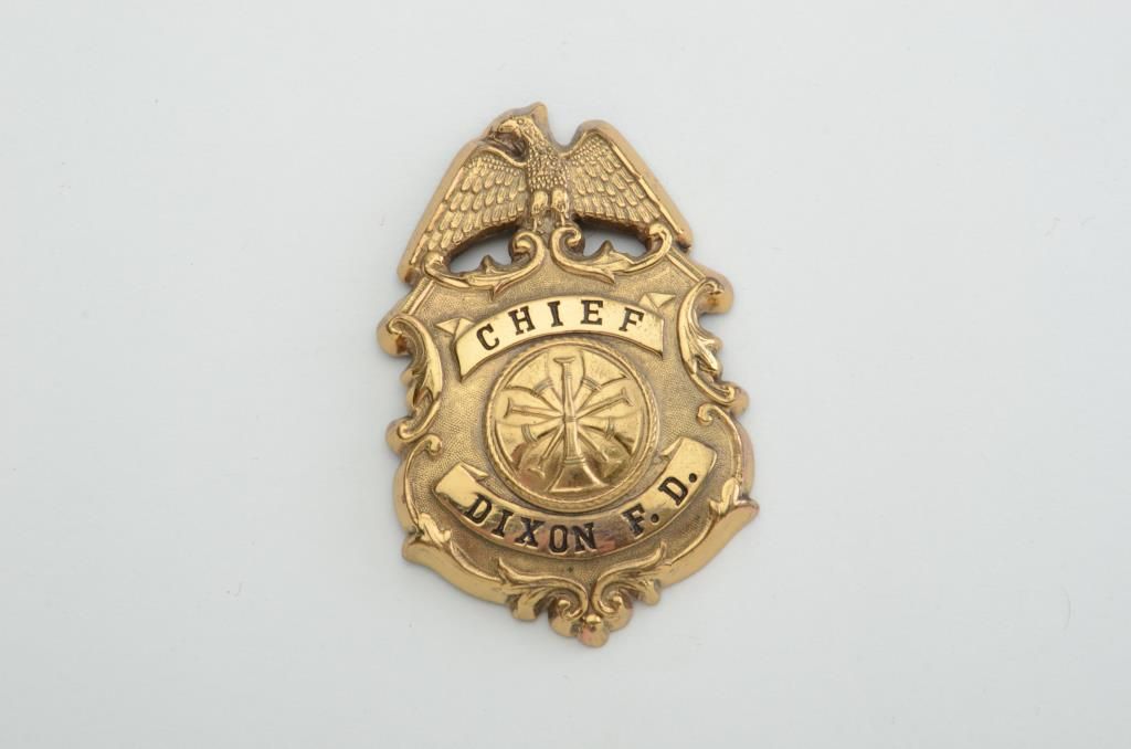 Fire Chief’s Badge, Dixon, F.D. in very good condition by G. Adams Co., St. Louis, MO.; note on back of badge states “Elwood Cruse 1950-1990 Illinois”; would be interesting to further research Cruse’s history. Est.:$200-$300.