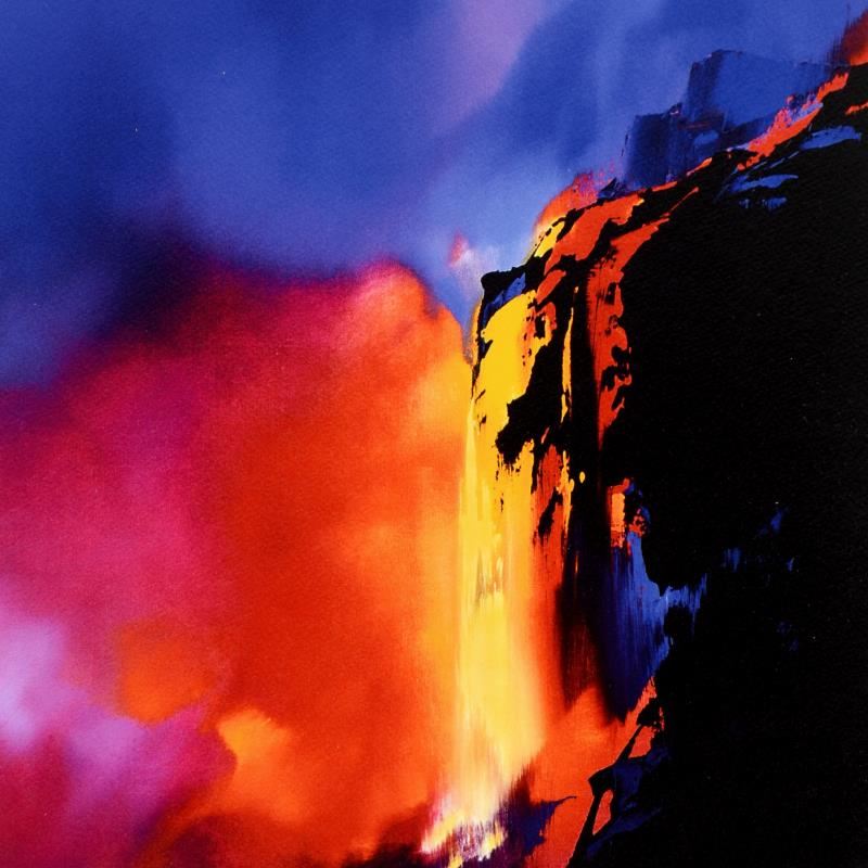 "Fire Cliffs" is a limited edition giclee on paper by Thomas Leung, numbered and hand signed by the artist. Includes Letter of Authenticity. Measures approx. 16" x 21.5" (border), 18" x 14" (image).