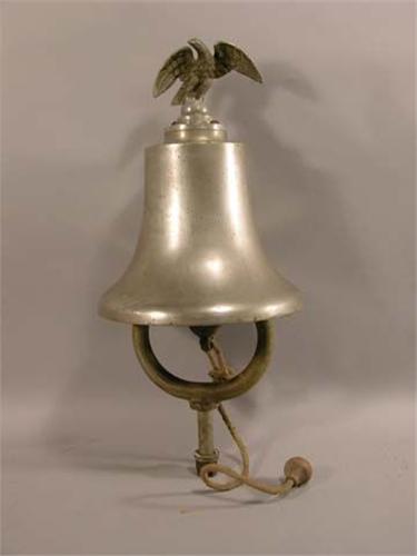 Fire engine bell with eagle finiale, 9.5"d x 13"t, nickel plated brass.