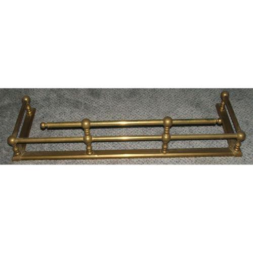 American. Late 19th century. Brass. Nice fireplace fender with bracket base ball and spindle-type standards and an open grill. 32" high