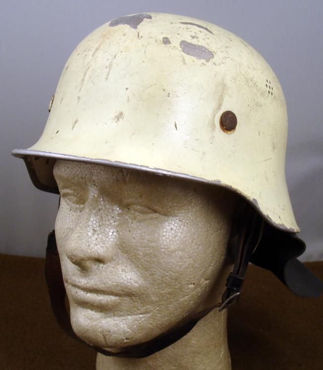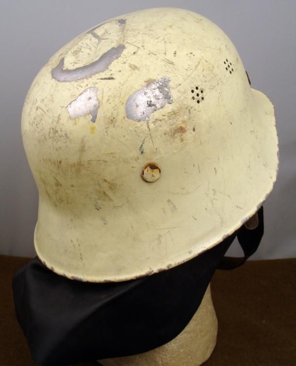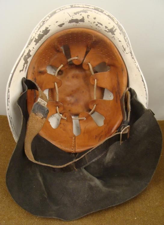 Fire Fighter Helmet * Details: White, glows green in the dark, leather top supports and neck protectorSize: 57