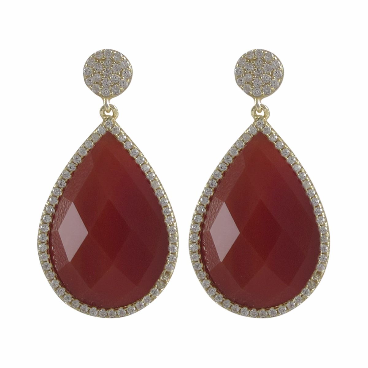 Fire Jade Semi Precious 13X20 Faceted Teardrop Stone, Gold Plated Sterling Silver CZ Post Earrings,