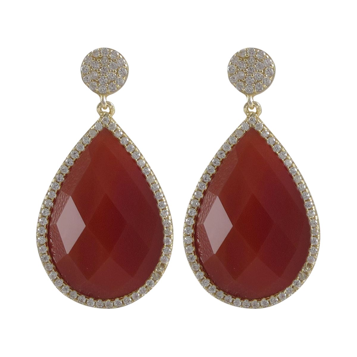 Fire Jade Semi Precious 13X20 Faceted Teardrop Stone, Gold Plated Sterling Silver CZ Post Earrings, 1.26&Quot;
