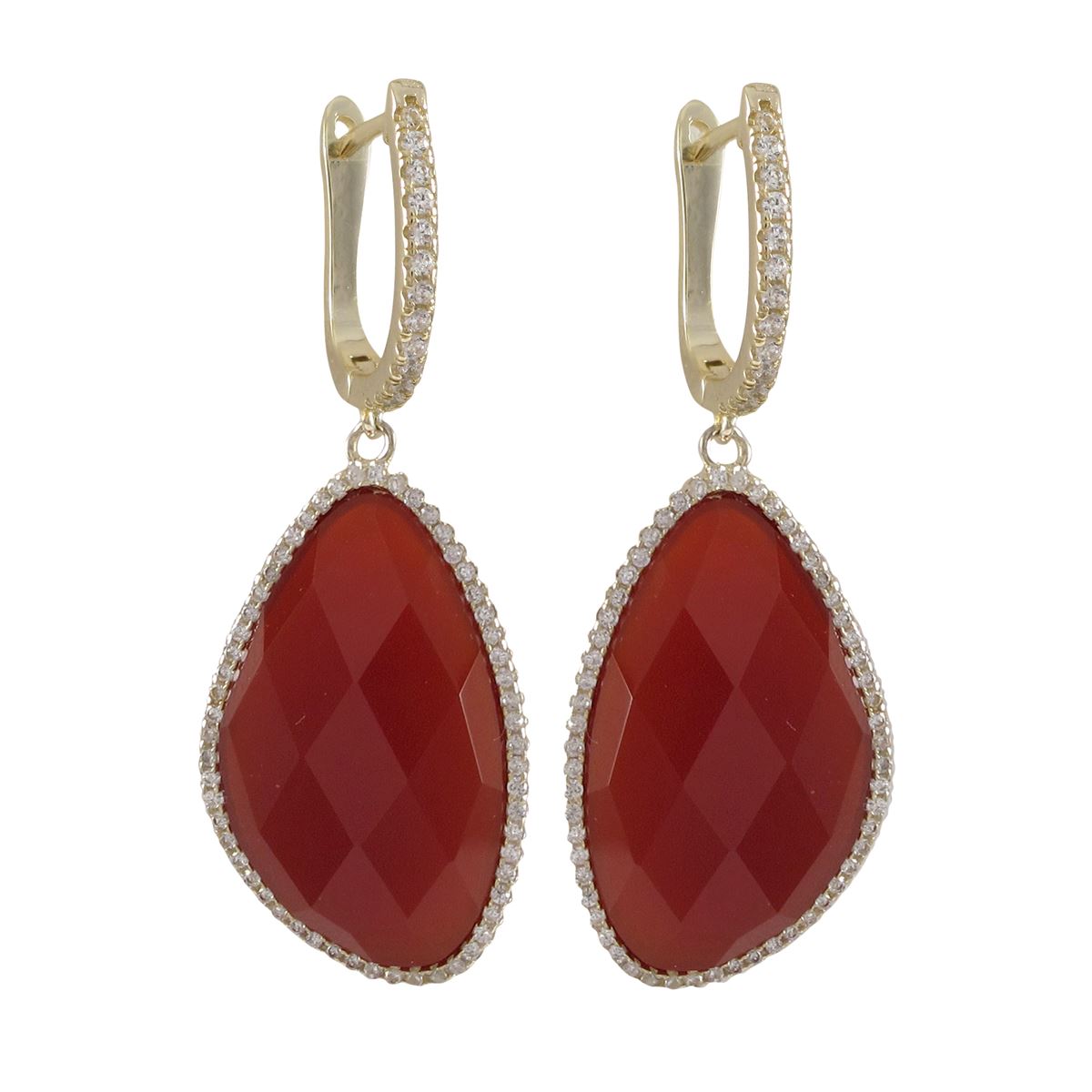 Fire Jade Semi Precious Faceted Stone, With CZ Border, On Gold Plated Sterling Silver Lever Back Ear