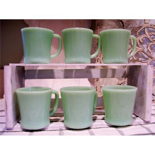 </font></strong>Set of six Fire King jadeite mugs with the "D" handle. All six are in very good condition with great color and gloss to the finish. No chips or rough edges. A couple of them have dull finishes on the inside only from use over the years. All are marked Fire King Oven Ware on the bottom. </font>