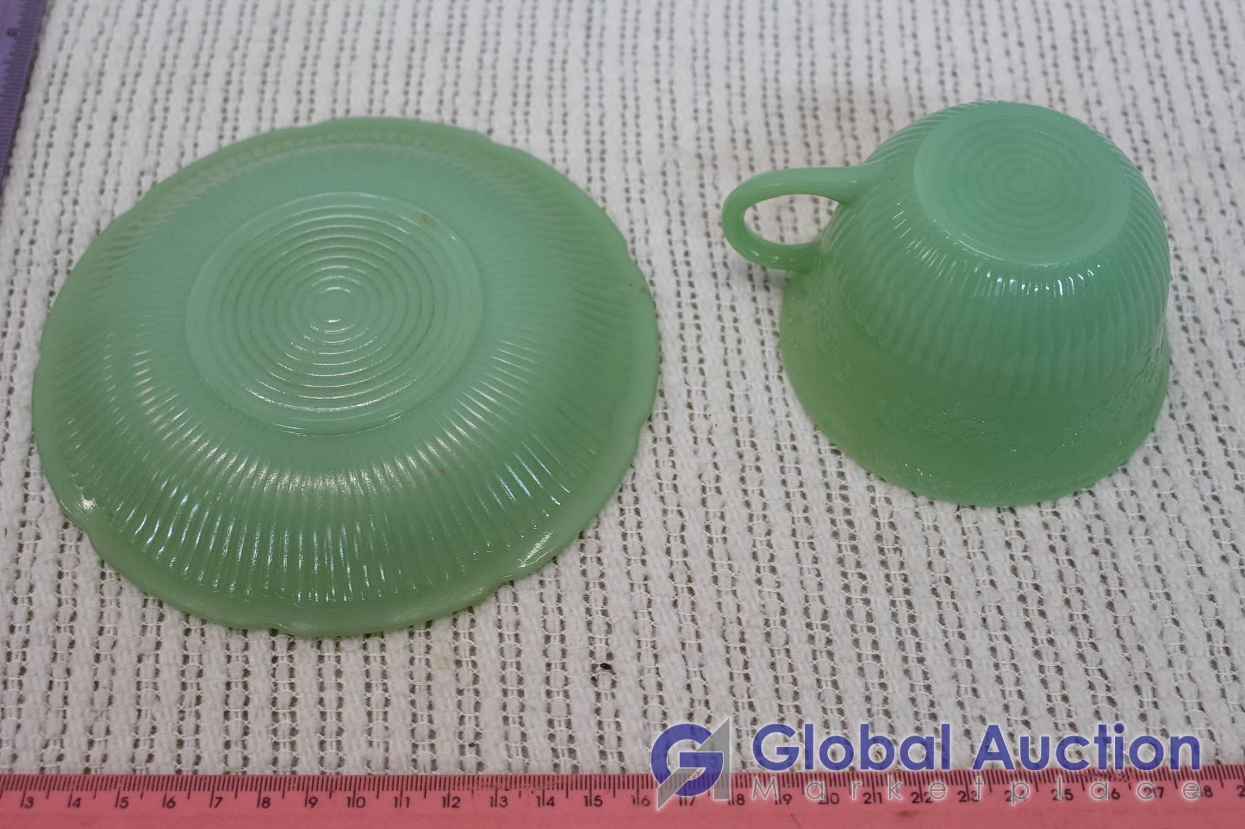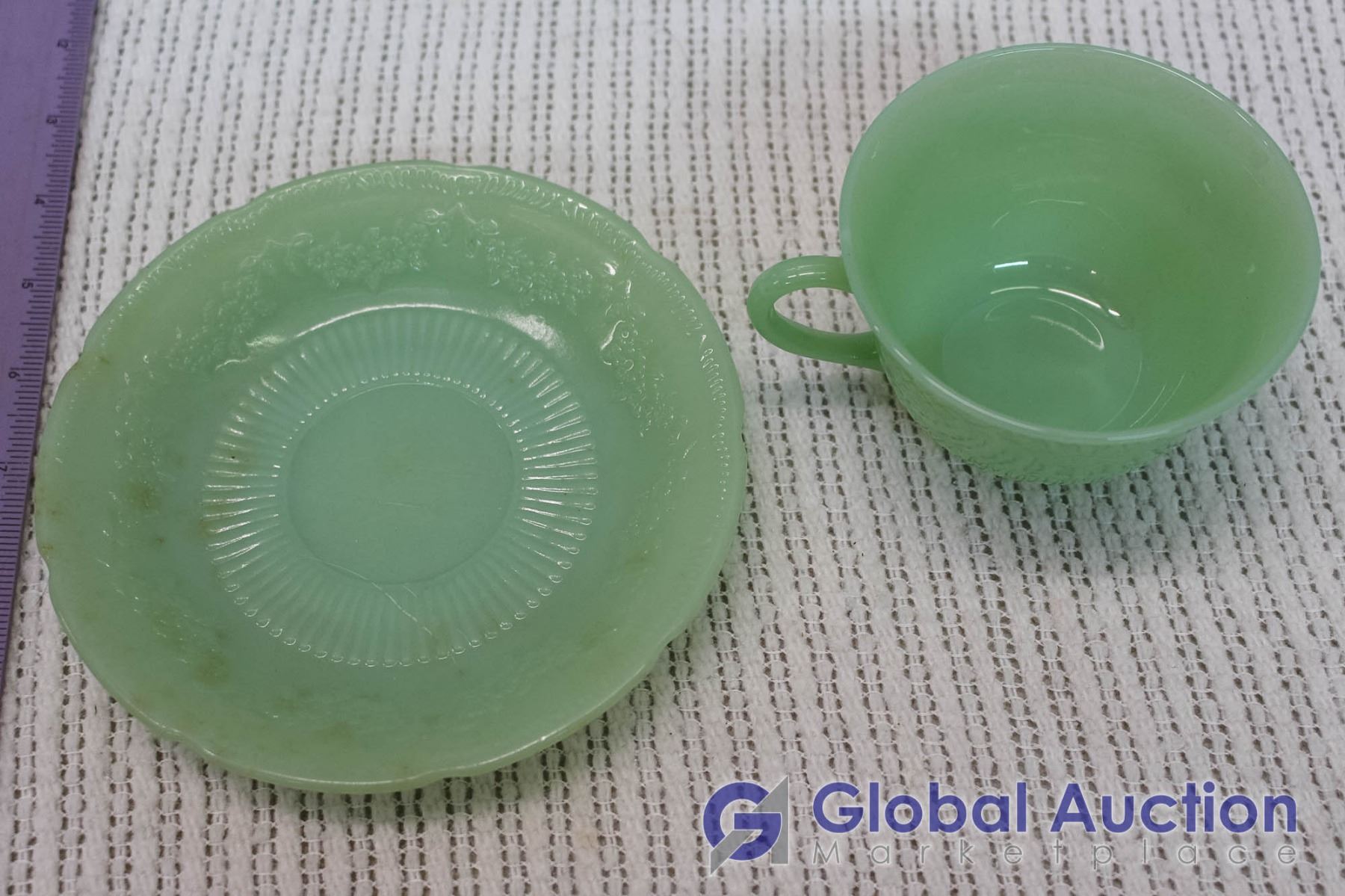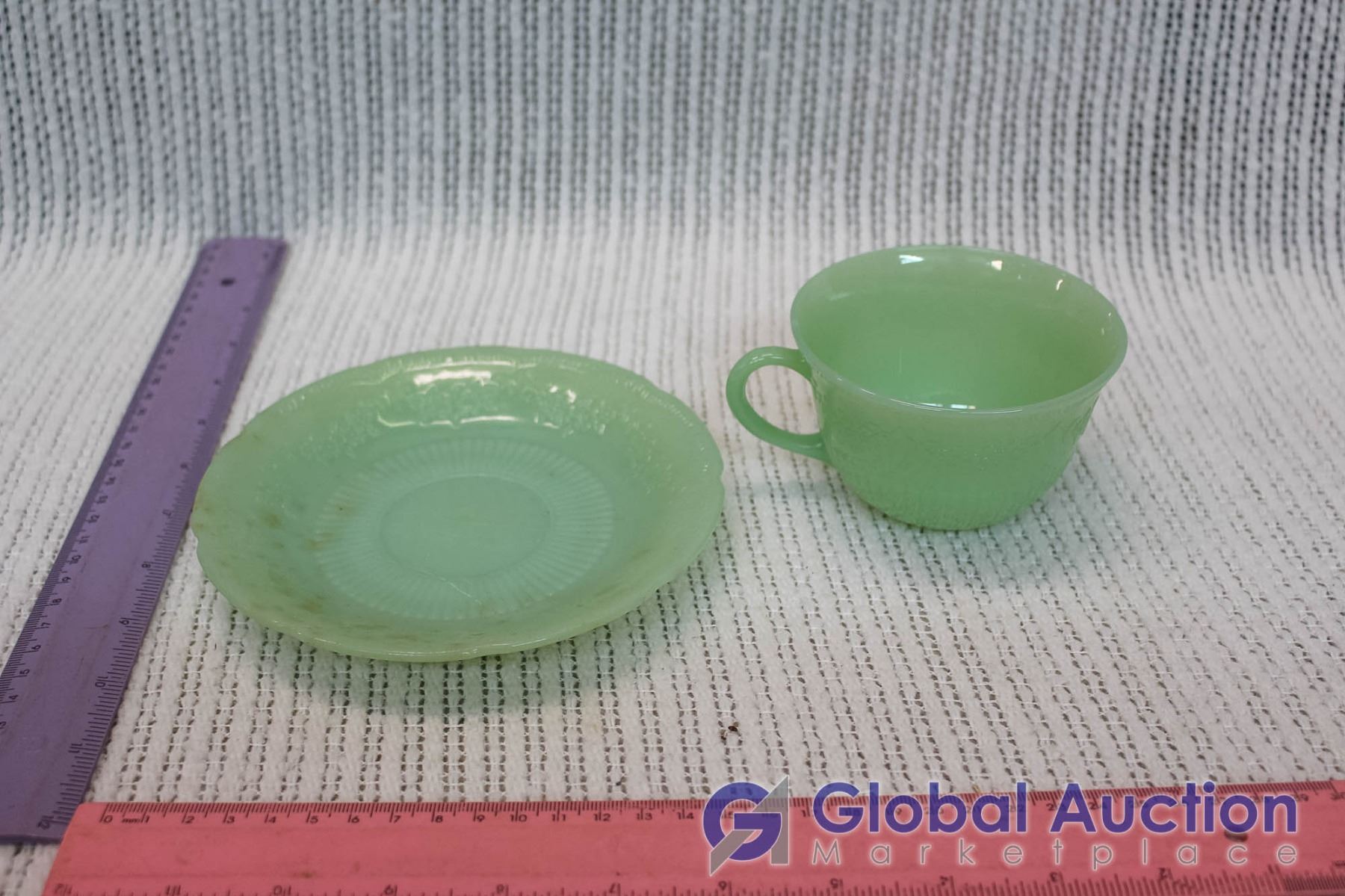 Fire King Jadeite Alice Tea Cup & Saucer (Mid Century/1960's)