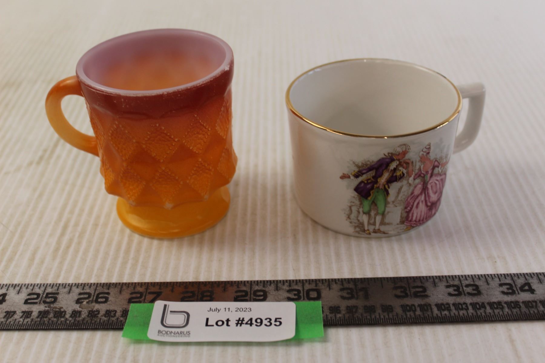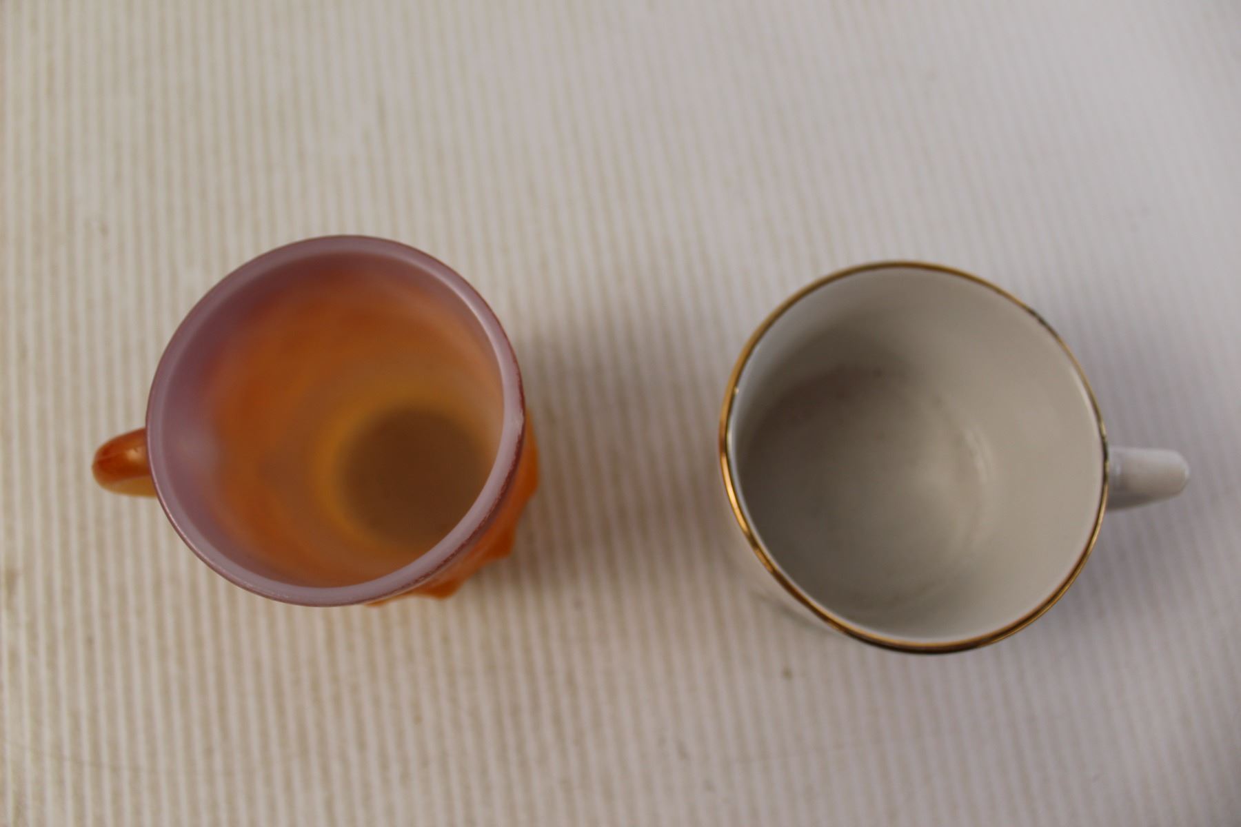 Fire-King Kimberly Glass Small Mug, Floral Small Mug with Gold Trim