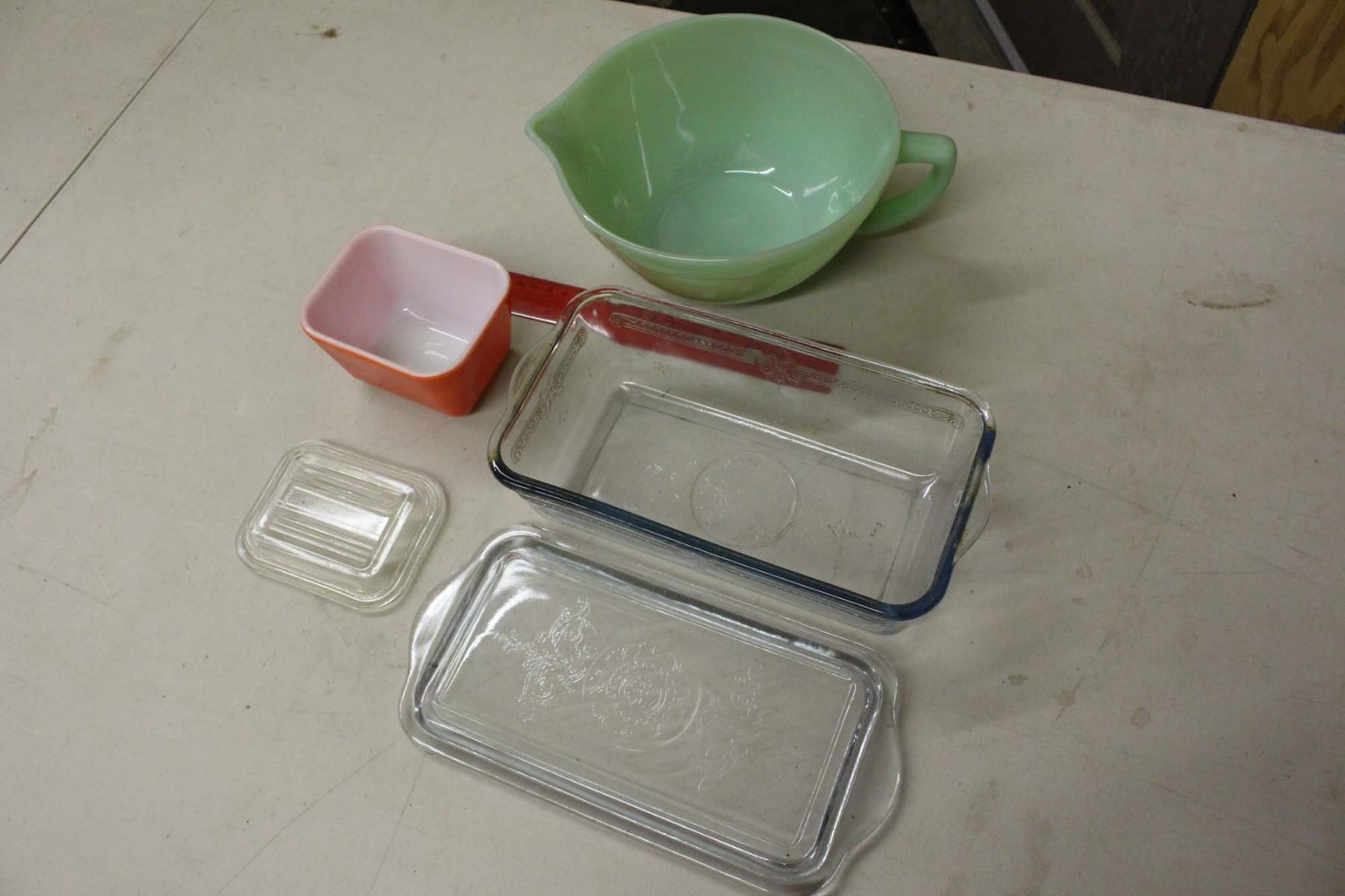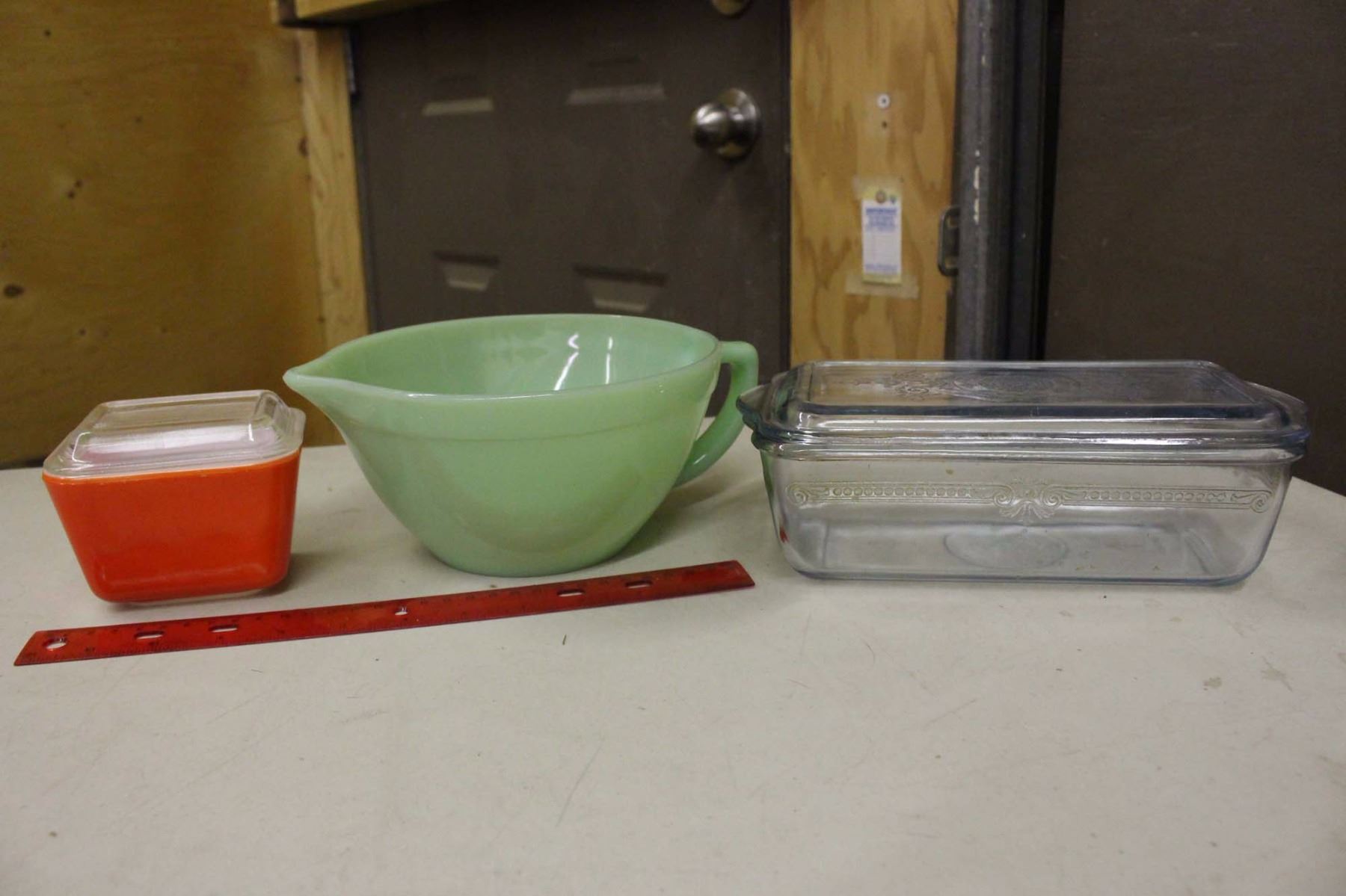 Fire King Oven Ware Bowl, Fire King Refrigerator Dish& Pyrex Refrigerator Dish