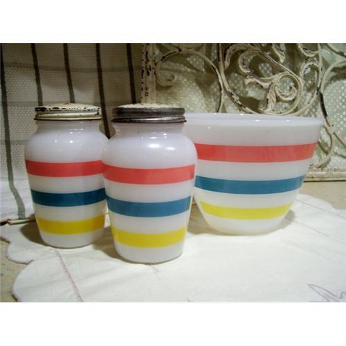 <tr><td>Title:Fire King Stripes Grease Jar Shakers Range Set</td></tr>