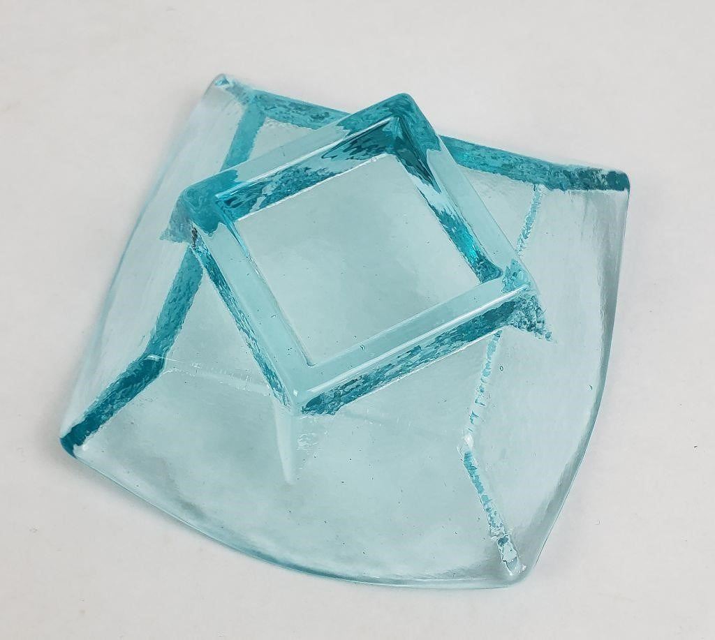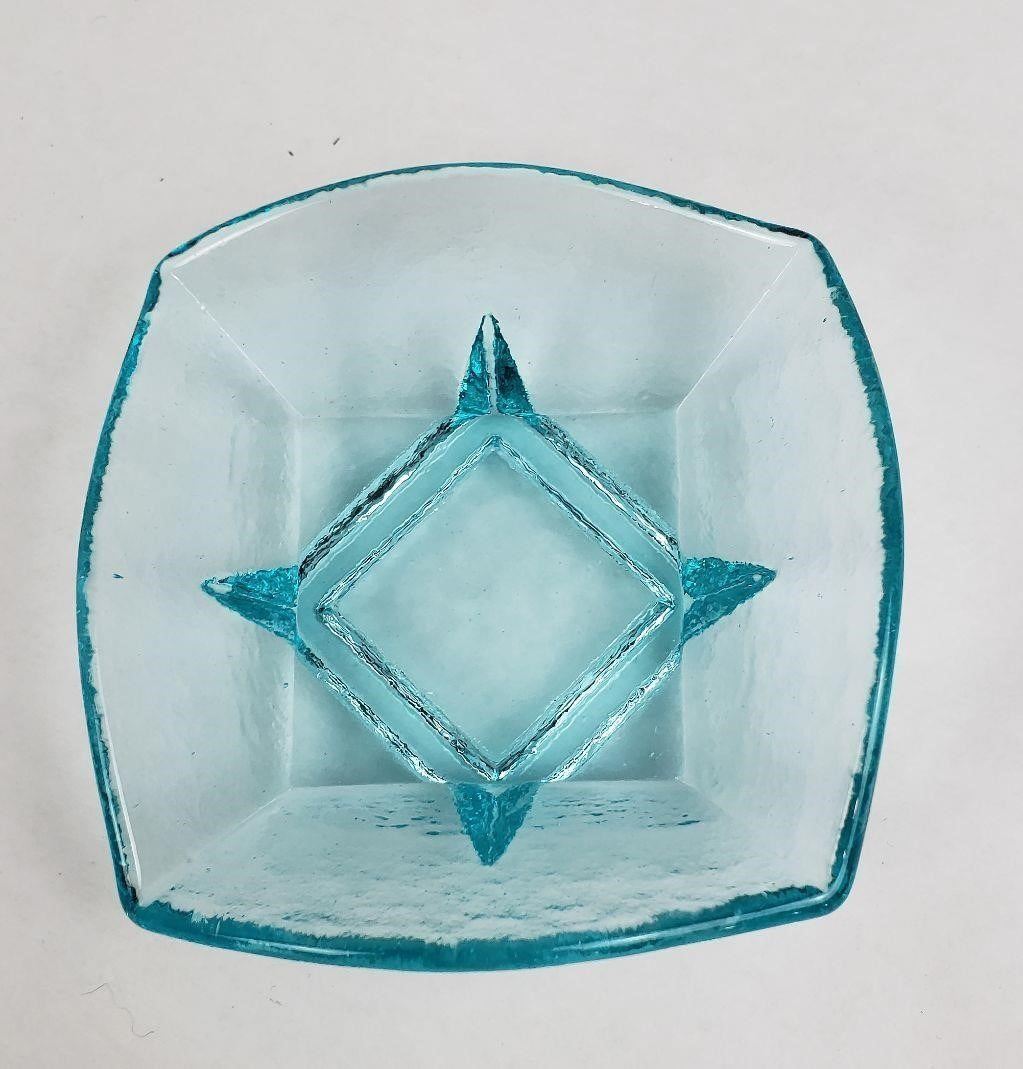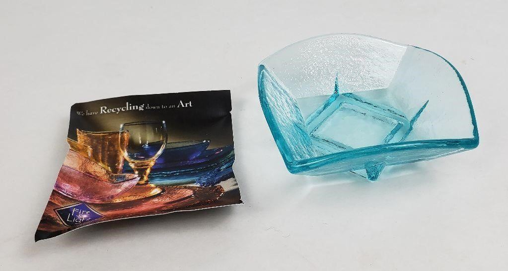 This item is made of recycled glass by hand from the Fire & Light Studio. The studio was located in Arcata California and has since been permanently closed. This could be your last chance to own a piece from their studio. All pieces have been discontinued and all stock has been sold out across the United States.