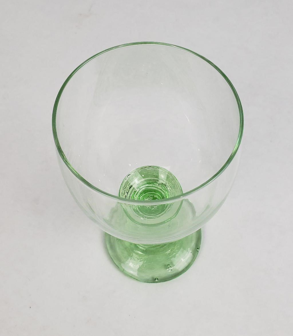 Brand new Celery Wine Goblet. Never used. This item is in perfect condition. This item is signed. This item is made of recycled glass by hand from the Fire & Light Studio. This is a first quality. There may be bubbles on the base as pictured. The goblet may be dirty from storage, they have never been washed.