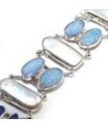 Silver & Fire Opal & Biwa Pearl Bracelet