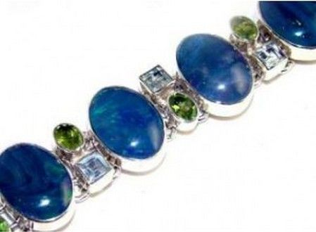 Silver & Fire Opal, Blue Topaz and Peridot Bracelet. Allow 6 to 8 weeks for delivery.