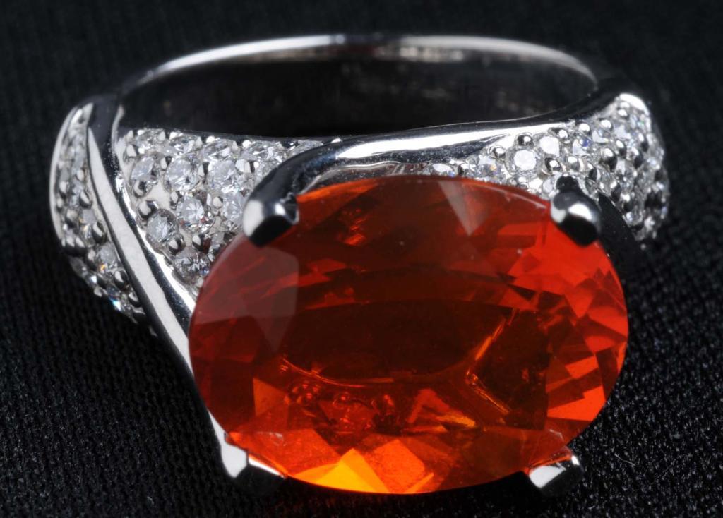 Description Oval cut opal weighs 5.13 carats and has great color with very good polish and symmetry. Set in diamond and platinum setting. Includes certificates. Condition (Excellent).
