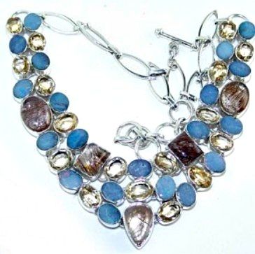 Silver and Fire Opal, Golden Rutilated Quartz & Citrine Necklace. Allow 6 to 8 weeks for delivery.