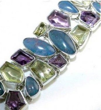 Silver & Fire Opal, Lemon Quartz and Amethyst Bracelet. Allow 6 to 8 weeks for delivery.