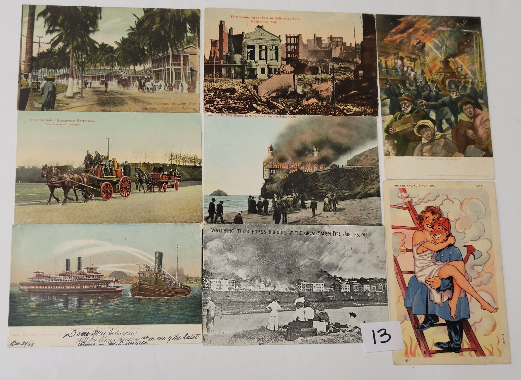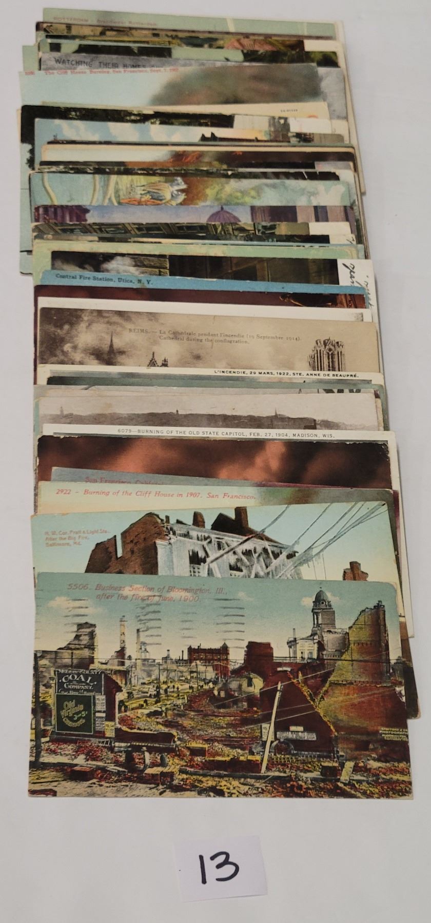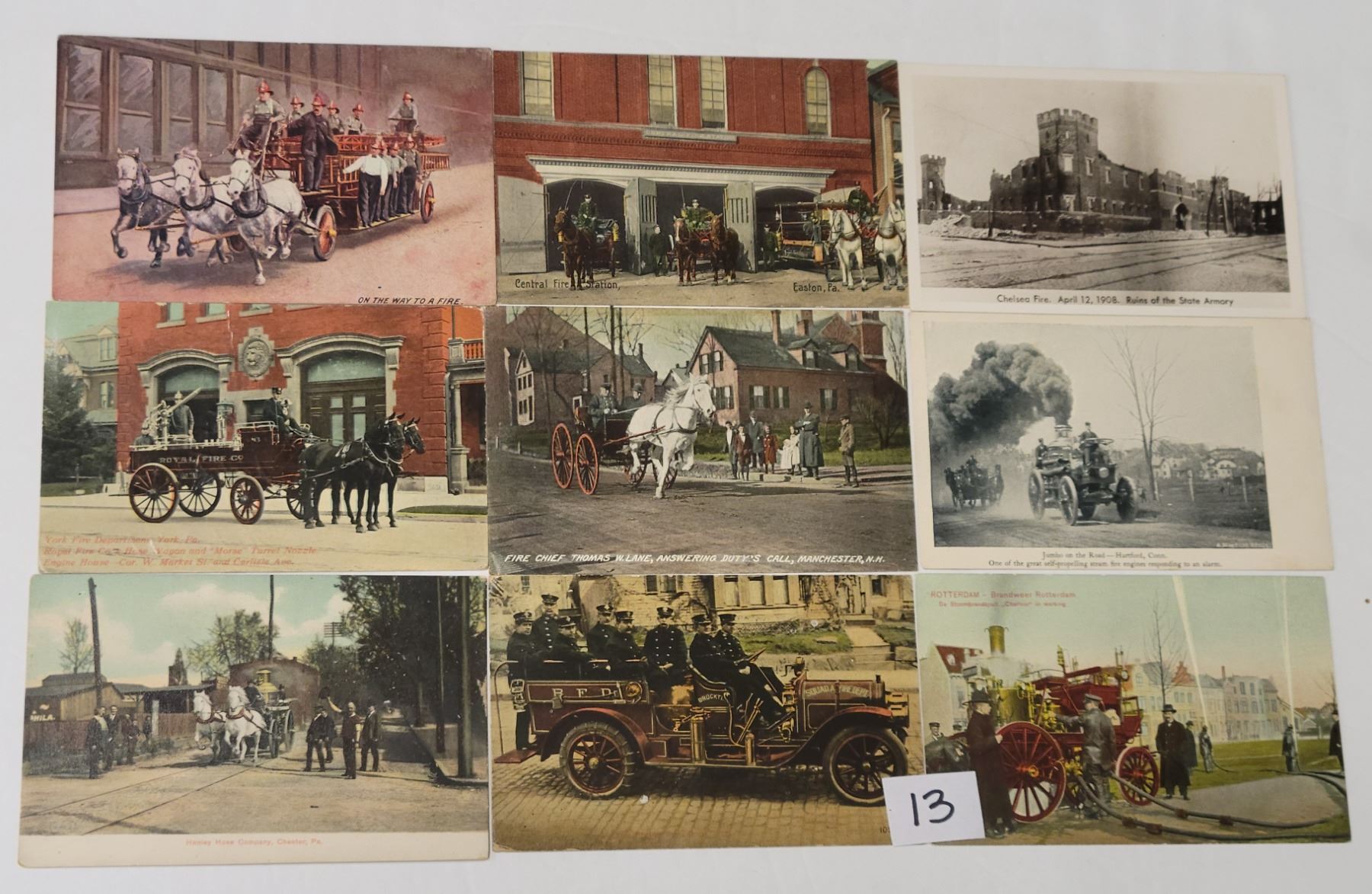 Over 60 fire postcards. Stations, fires, engines, etc. Early to linen.
