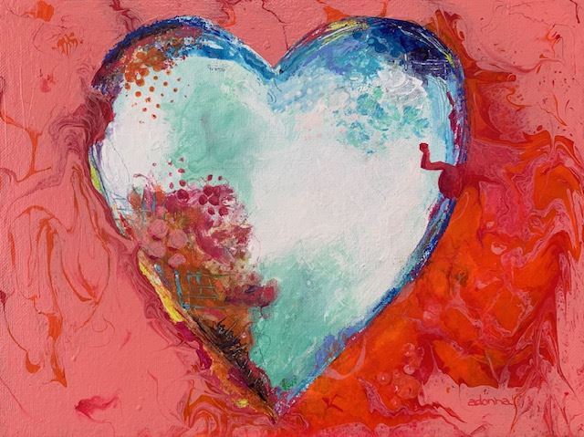 An ORIGINAL mixed media painting on on wood panel by Adonna ,12x9"