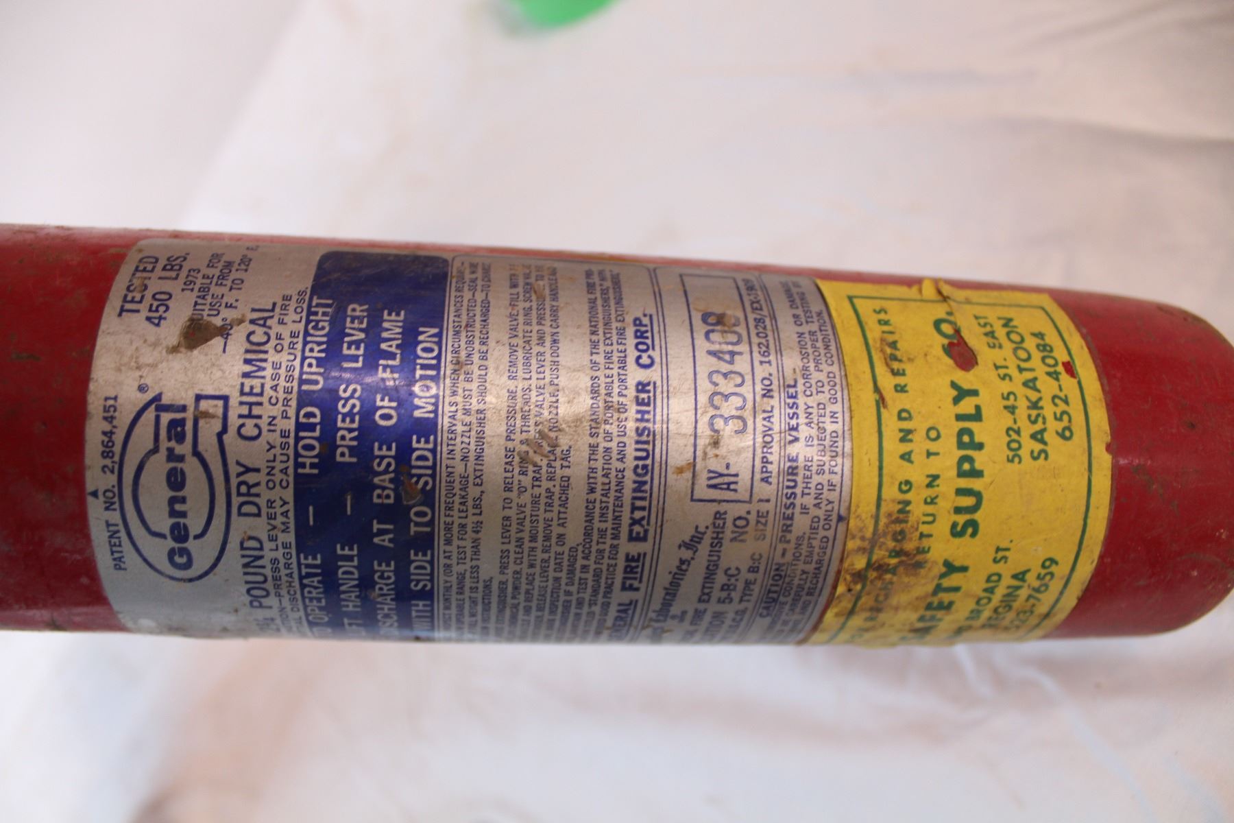 Fire extinguishers, one with wall bracket