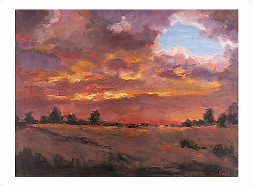 This beautifully composed landscape with its burning red sky is the perfect print for any wall. Artist: Krol Date: 2002 Medium: Print Image Dimensions: 30 inches 21 inches Page Dimensions: 34 inches 24 1/2 inches Condition: New This work is sold exclusively through Masterworks Fine Art.