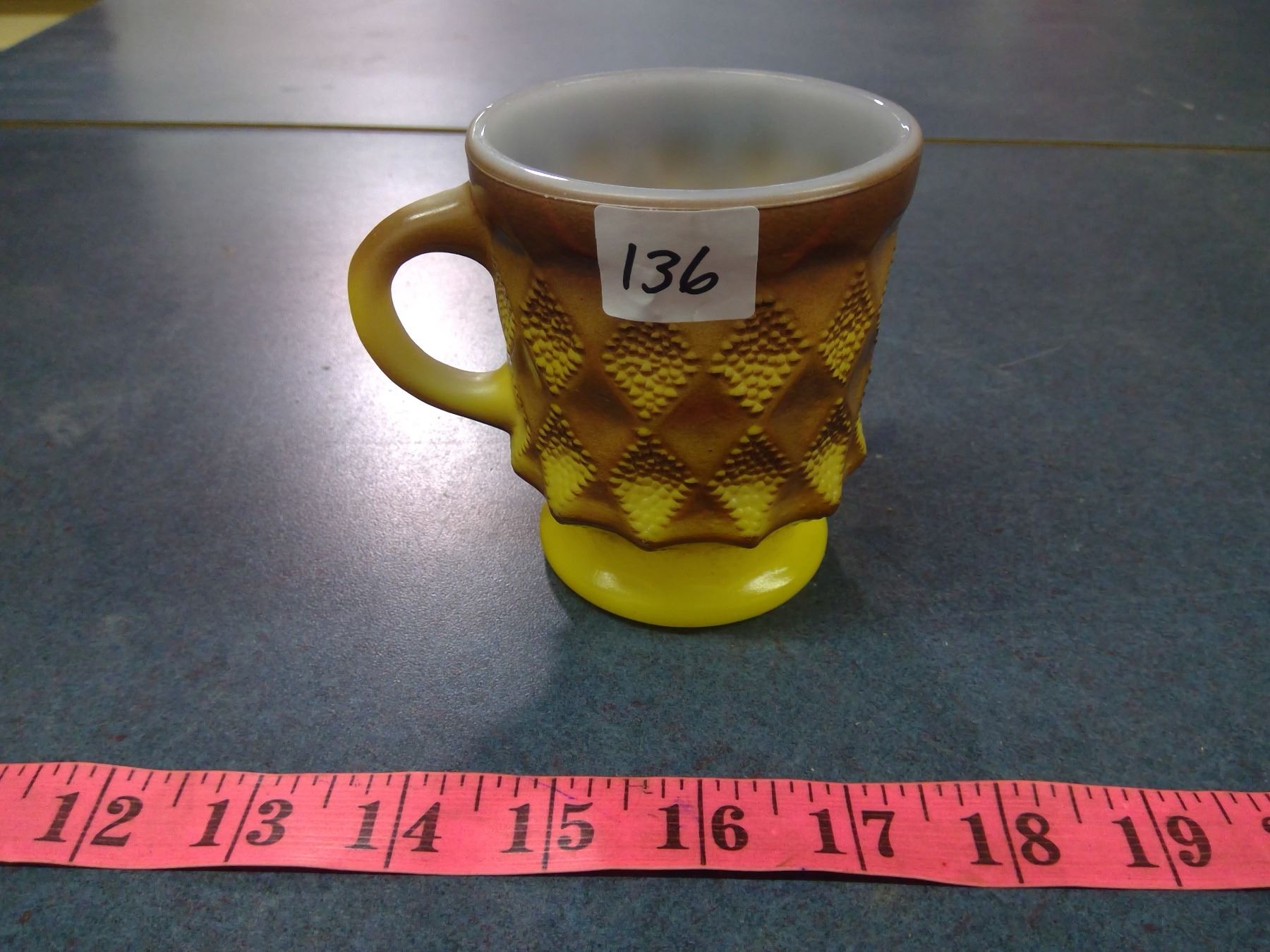 Fire King coffee mug sunburst, 1971.