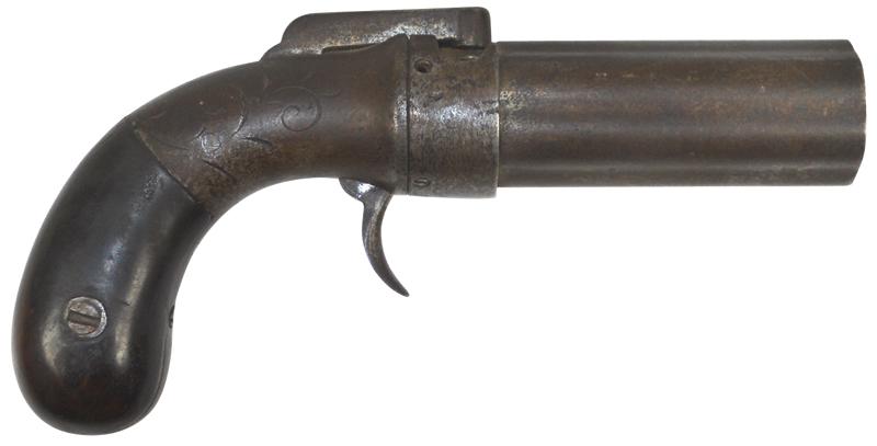 Firearm, revolver, Allen and Thurber Pepperbox, partially engraved, Worcester 6-shot w/fluted 3" bar