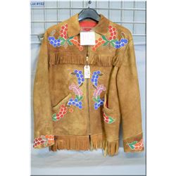 Native Leather Beaded Jacket w/ zipper, floral decoration