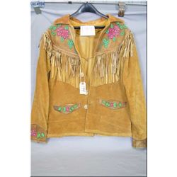 Native Beaded Leather Jacket w/ fringes - beaded floral design