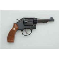 Smith & Wesson Model 12-3 Airweight DA revolver, .38 Special cal., 4” barrel, blue finish, checkered wood medallion grips, #9D54447, in facto...