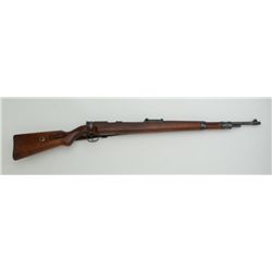 Spanish Mauser bolt action rifle, 7.92mm cal., 24” barrel, blue finish, wood stocks, #2M-7940. This gun is in overall very good condition showing a